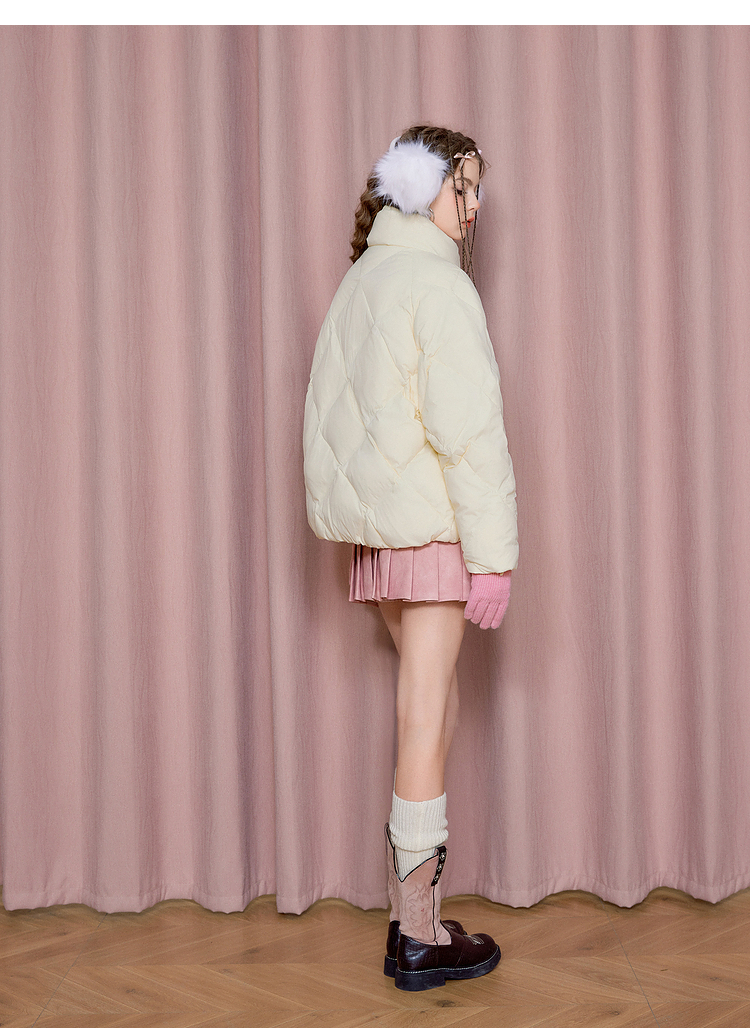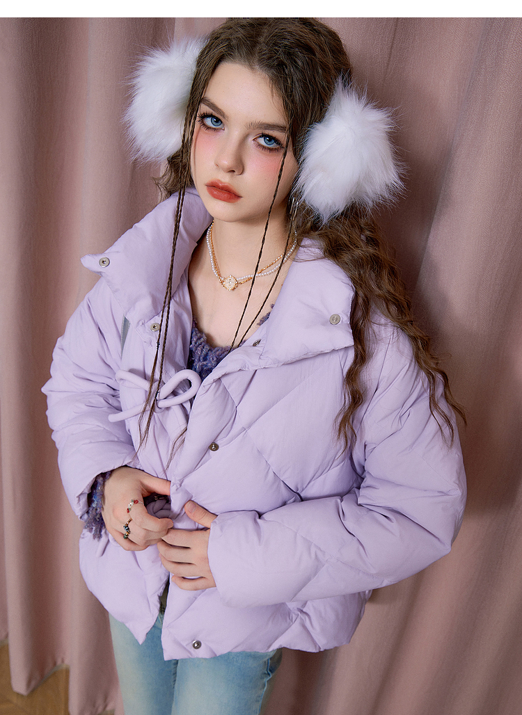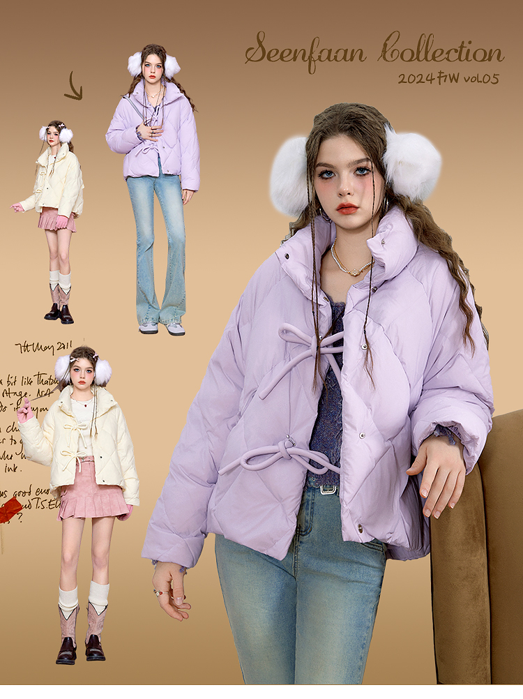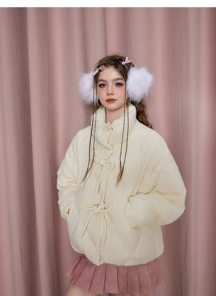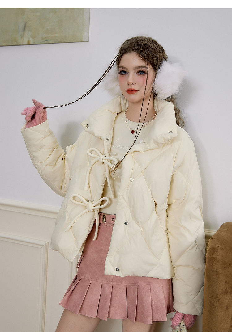 Bow Design Stand Neck White Duck Down Jacket NA6911