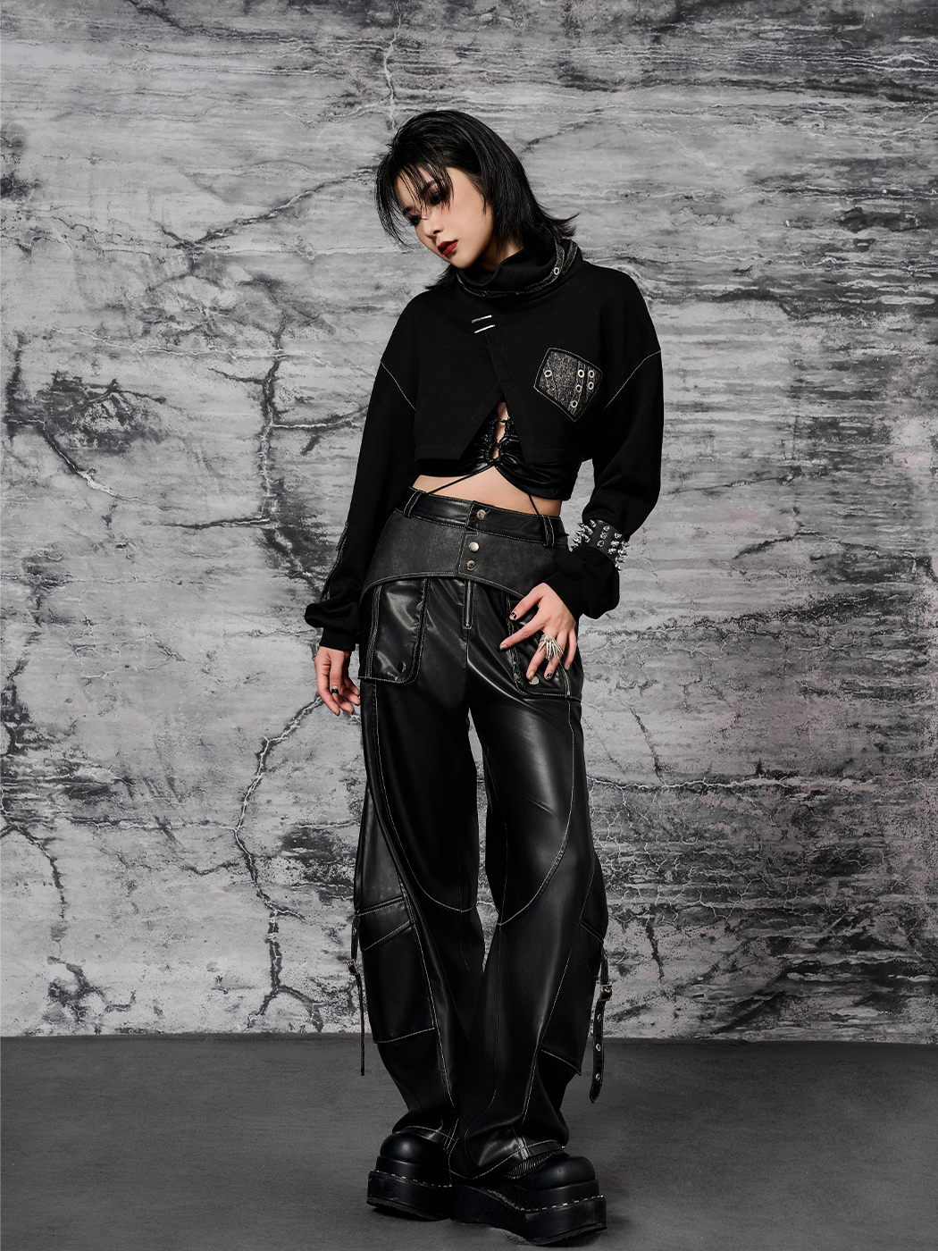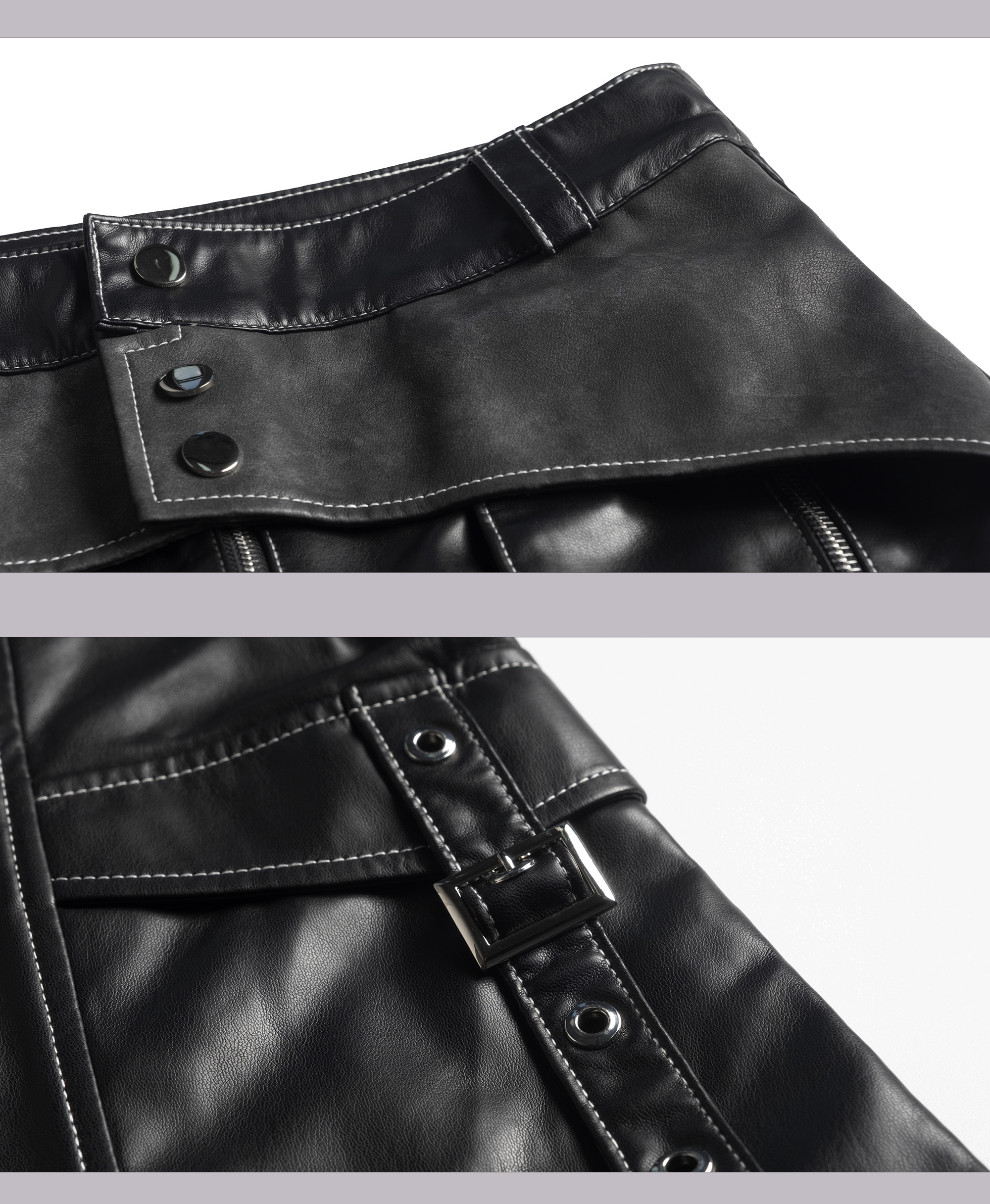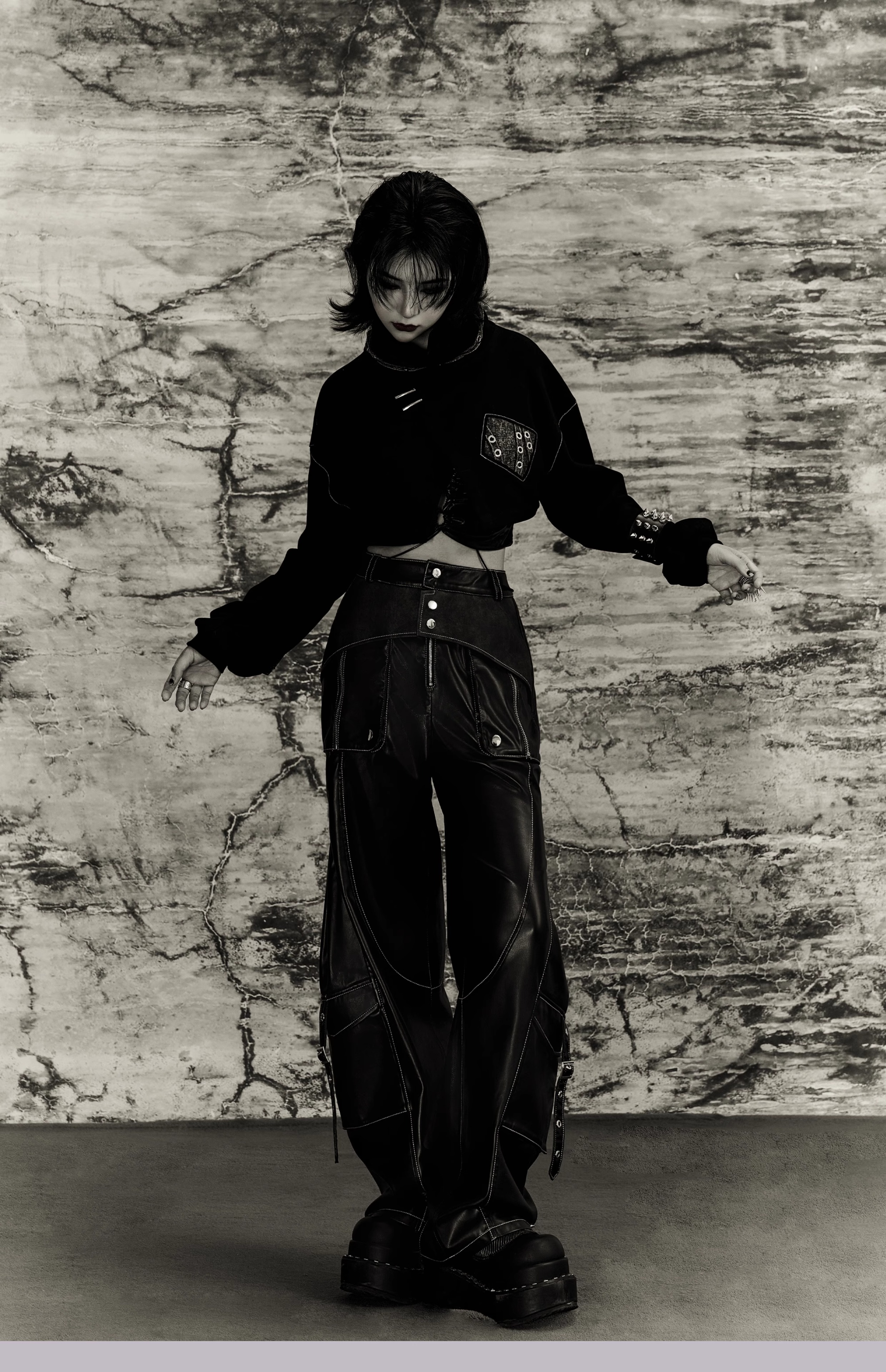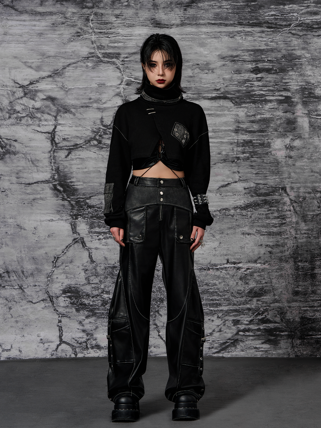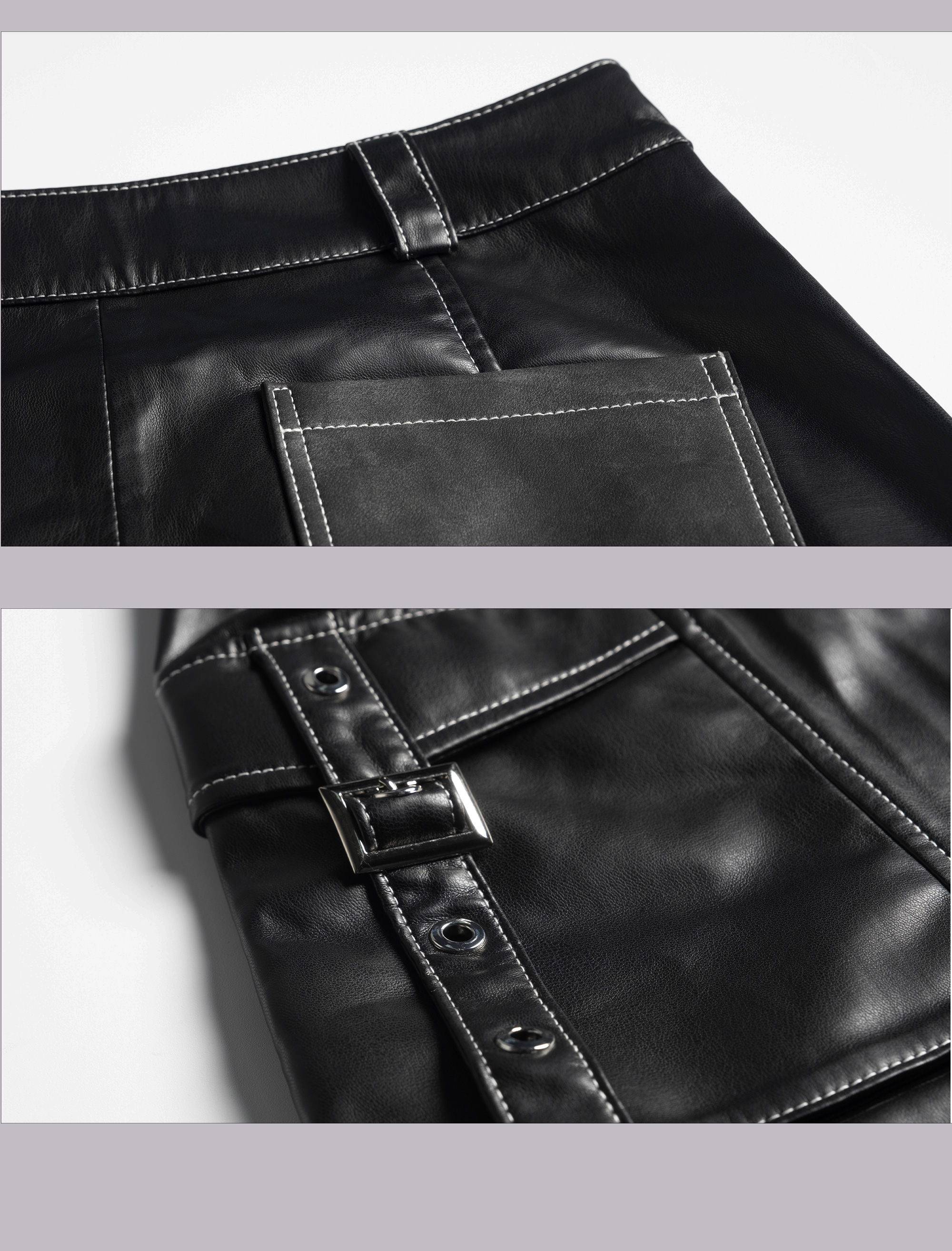 Metal-Embellished Straight-Leg PU Leather Cargo Pants NA8184