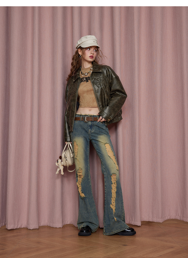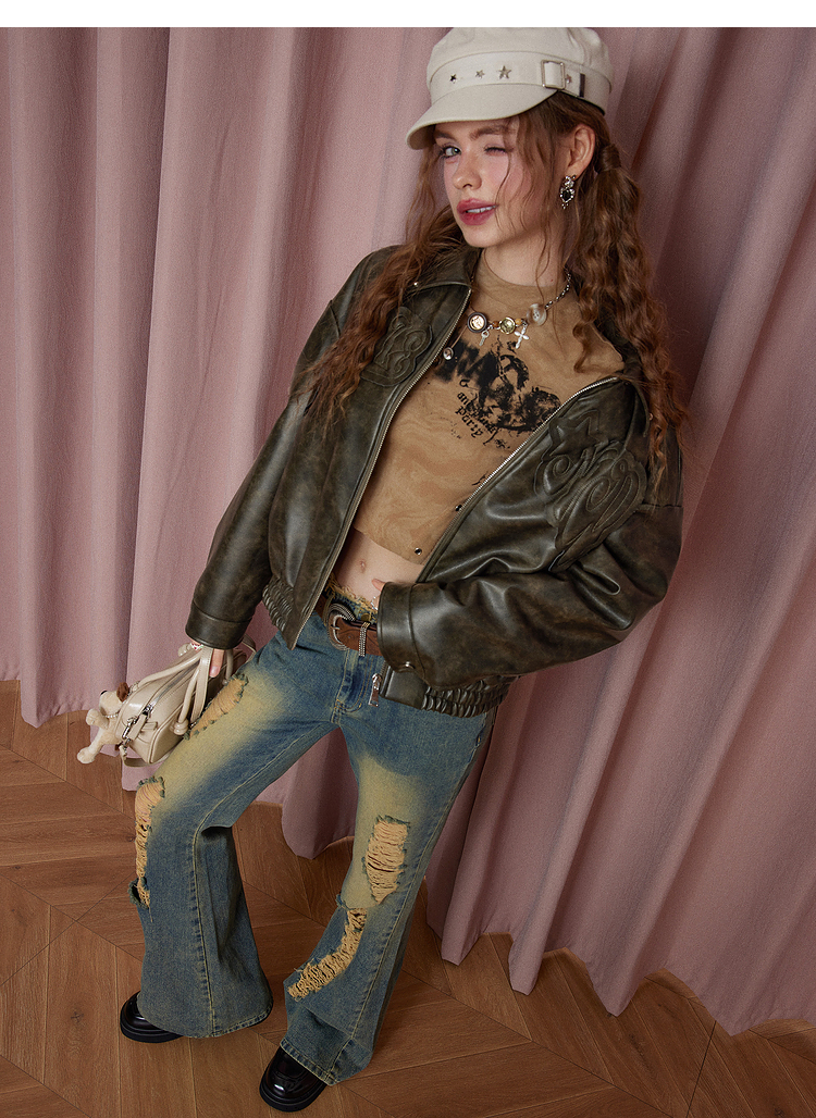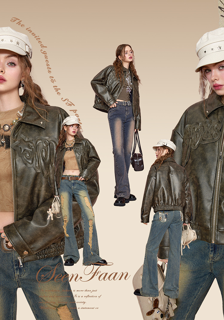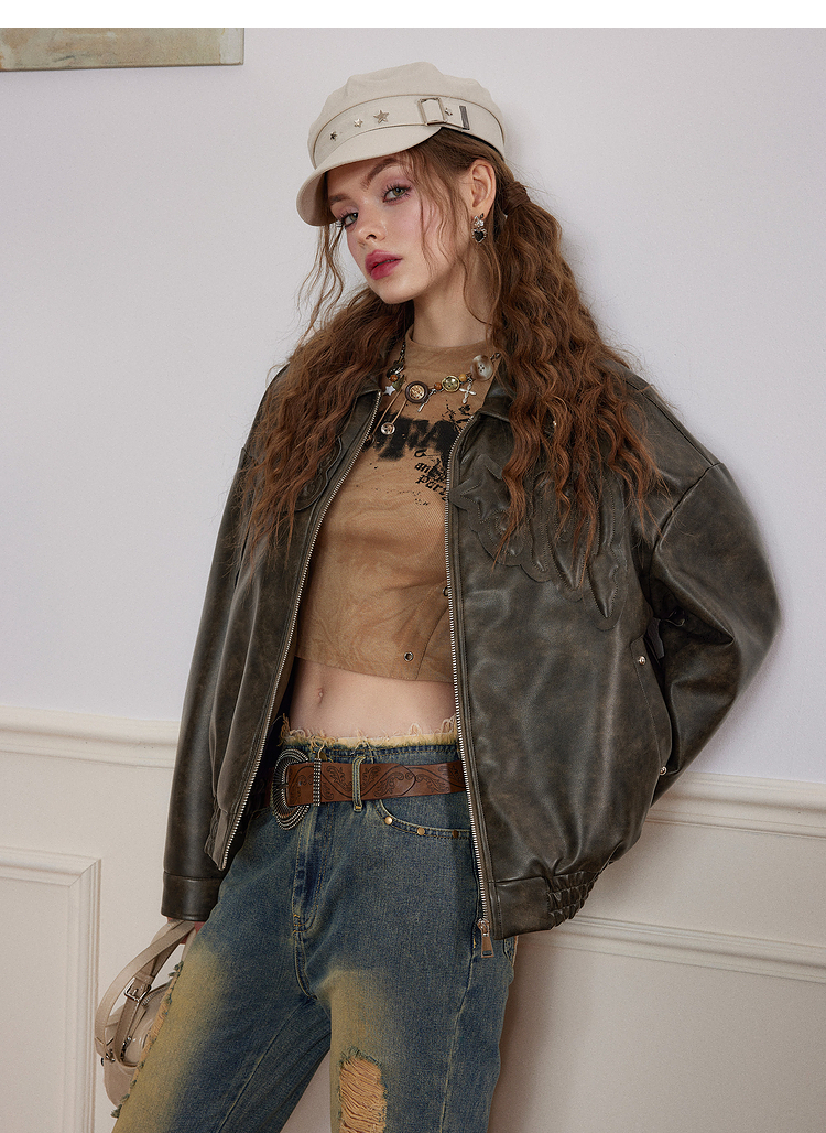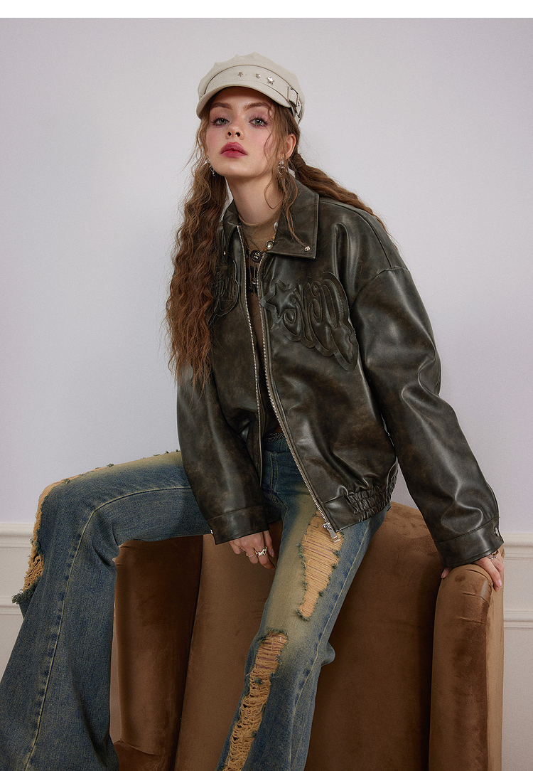 Patch Embroidery Quilted PU Leather Jacket NA6876