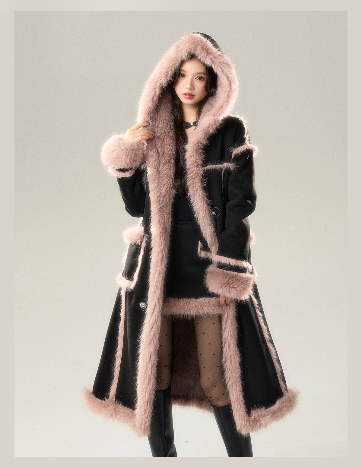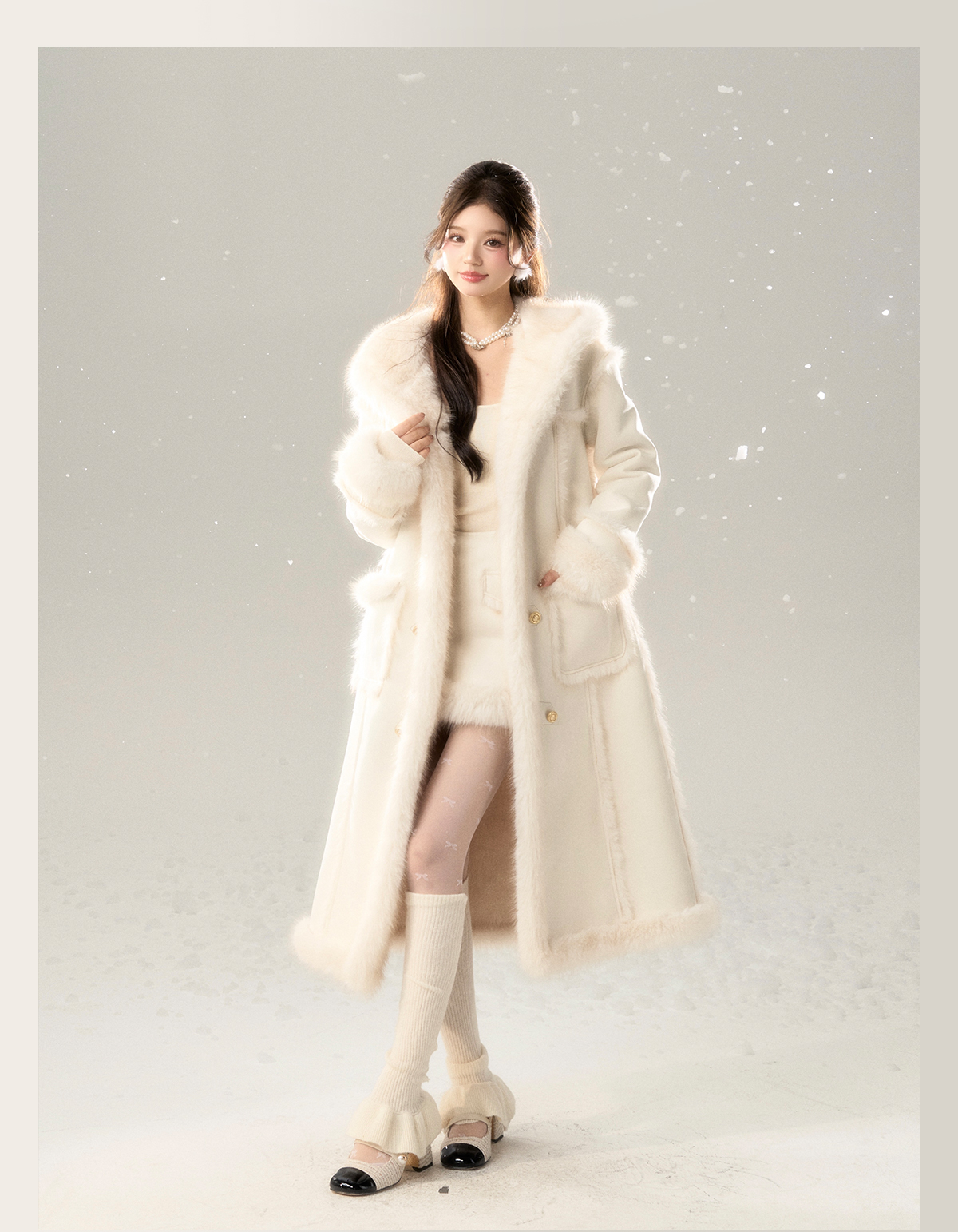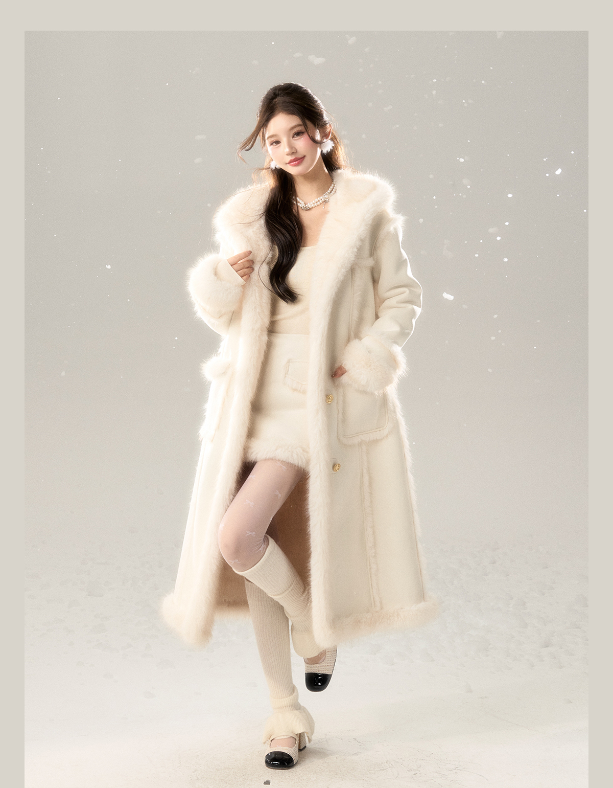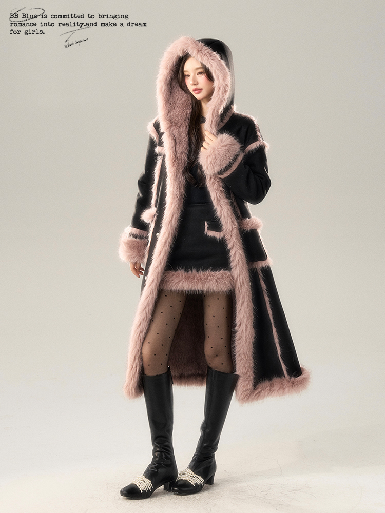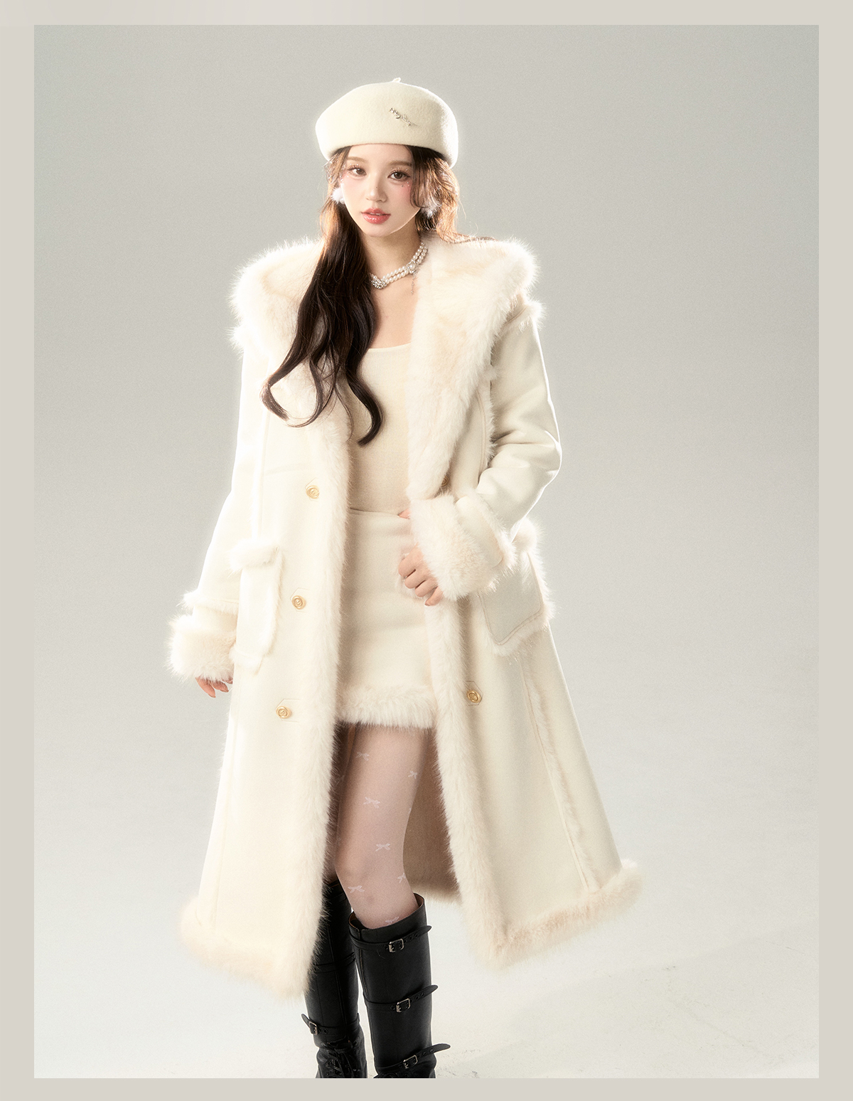 Long Fur Coat & Short Skirt Setup NA7422