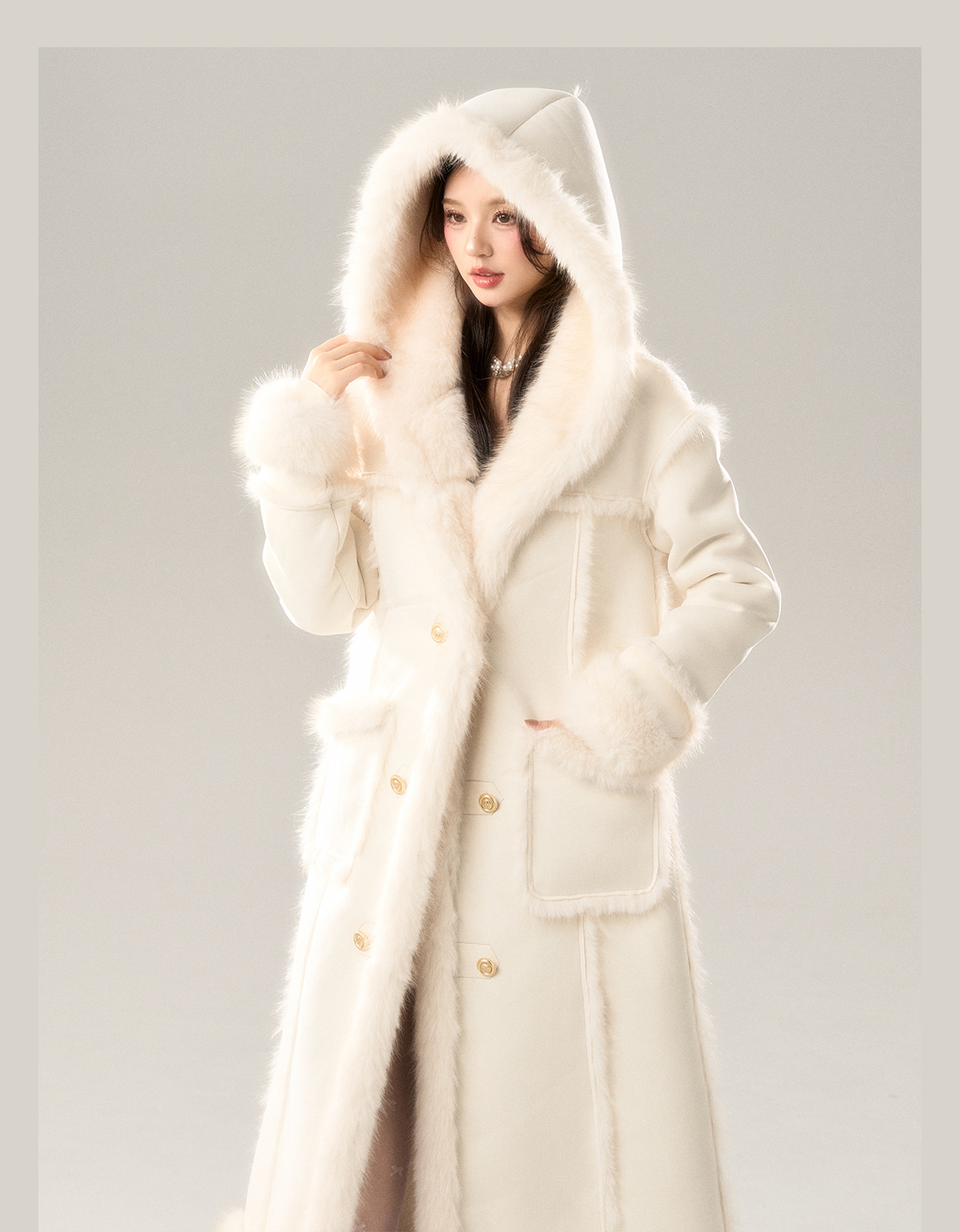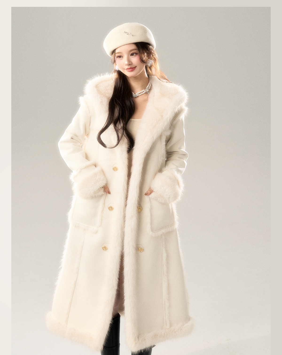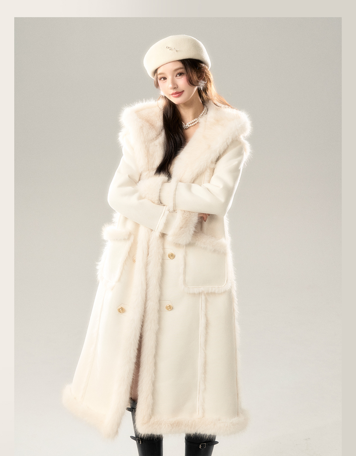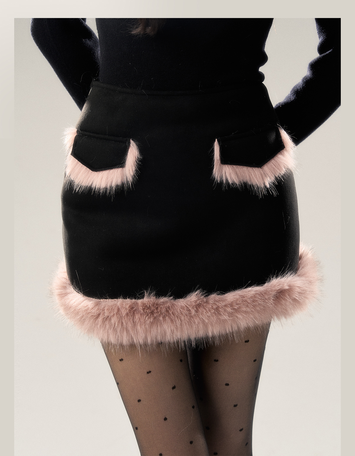 Long Fur Coat & Short Skirt Setup NA7422