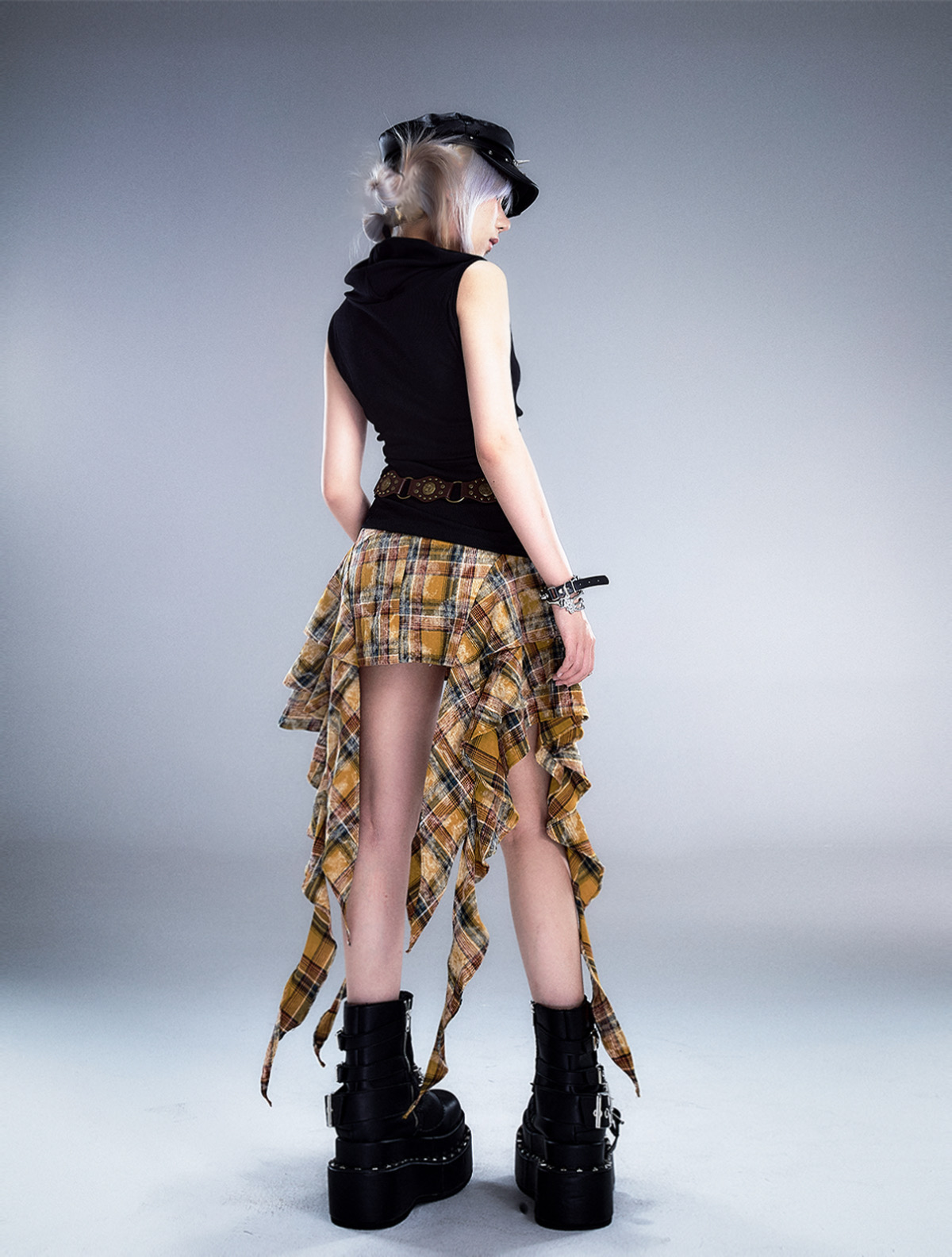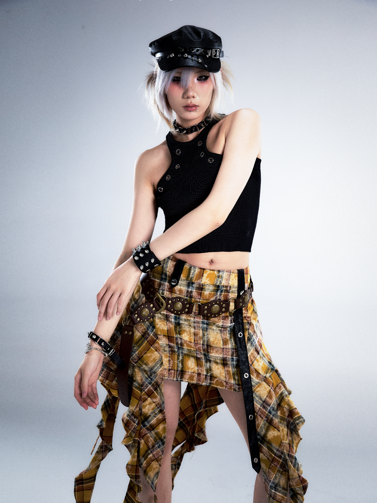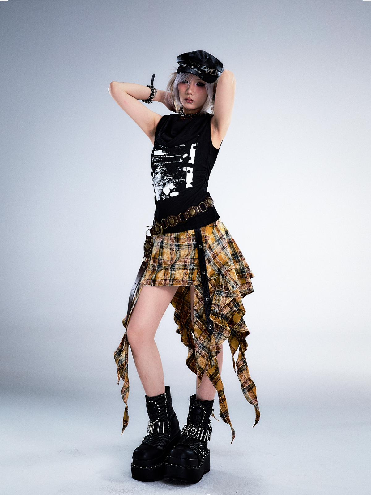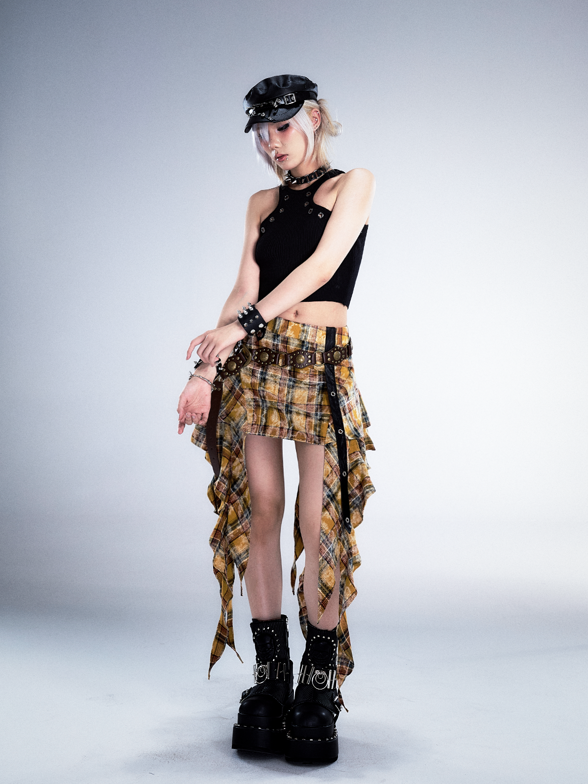 Punk Rock Asymmetrical Plaid A-Line Skirt NA8117