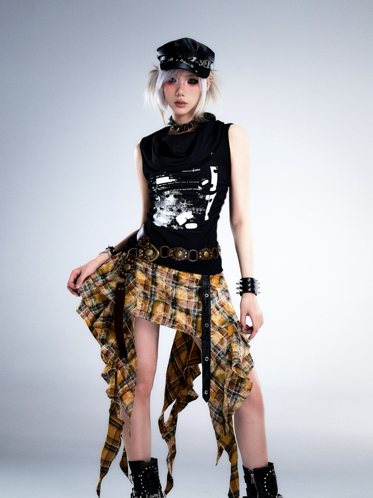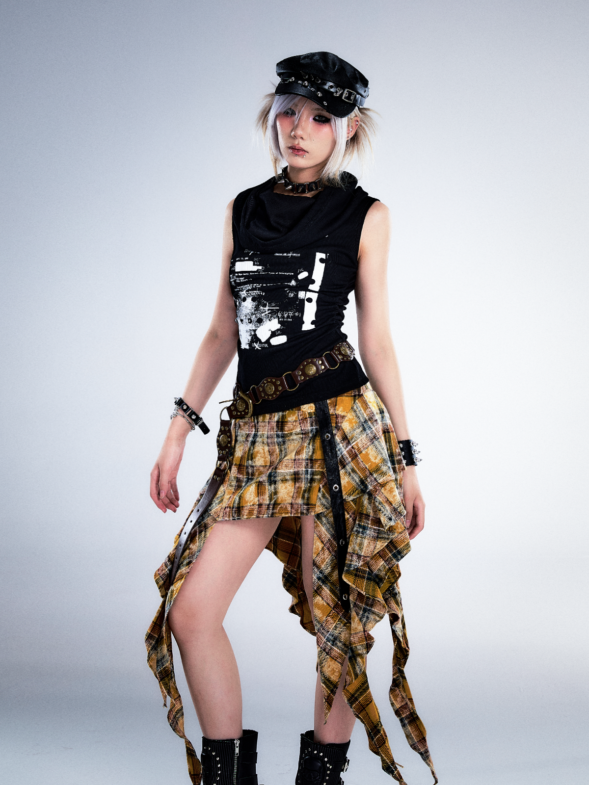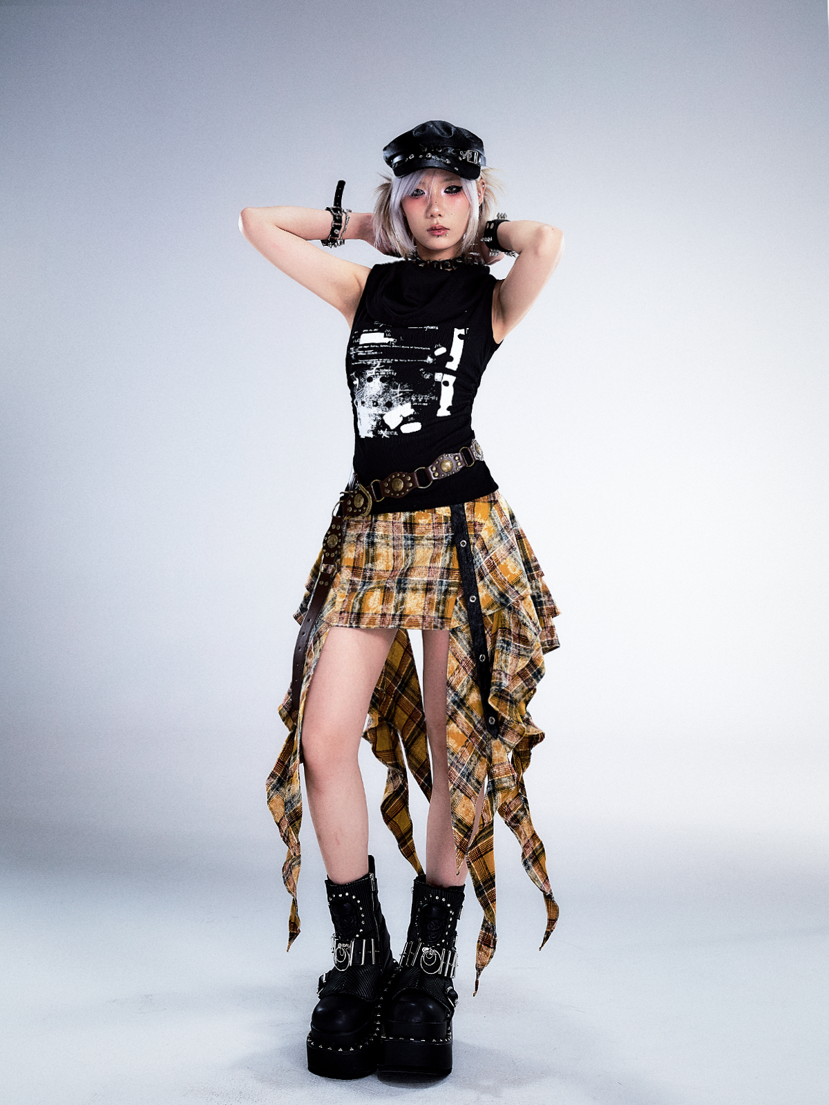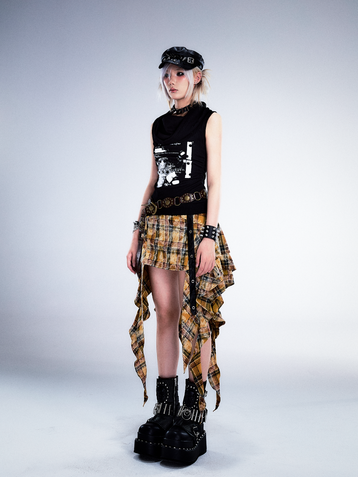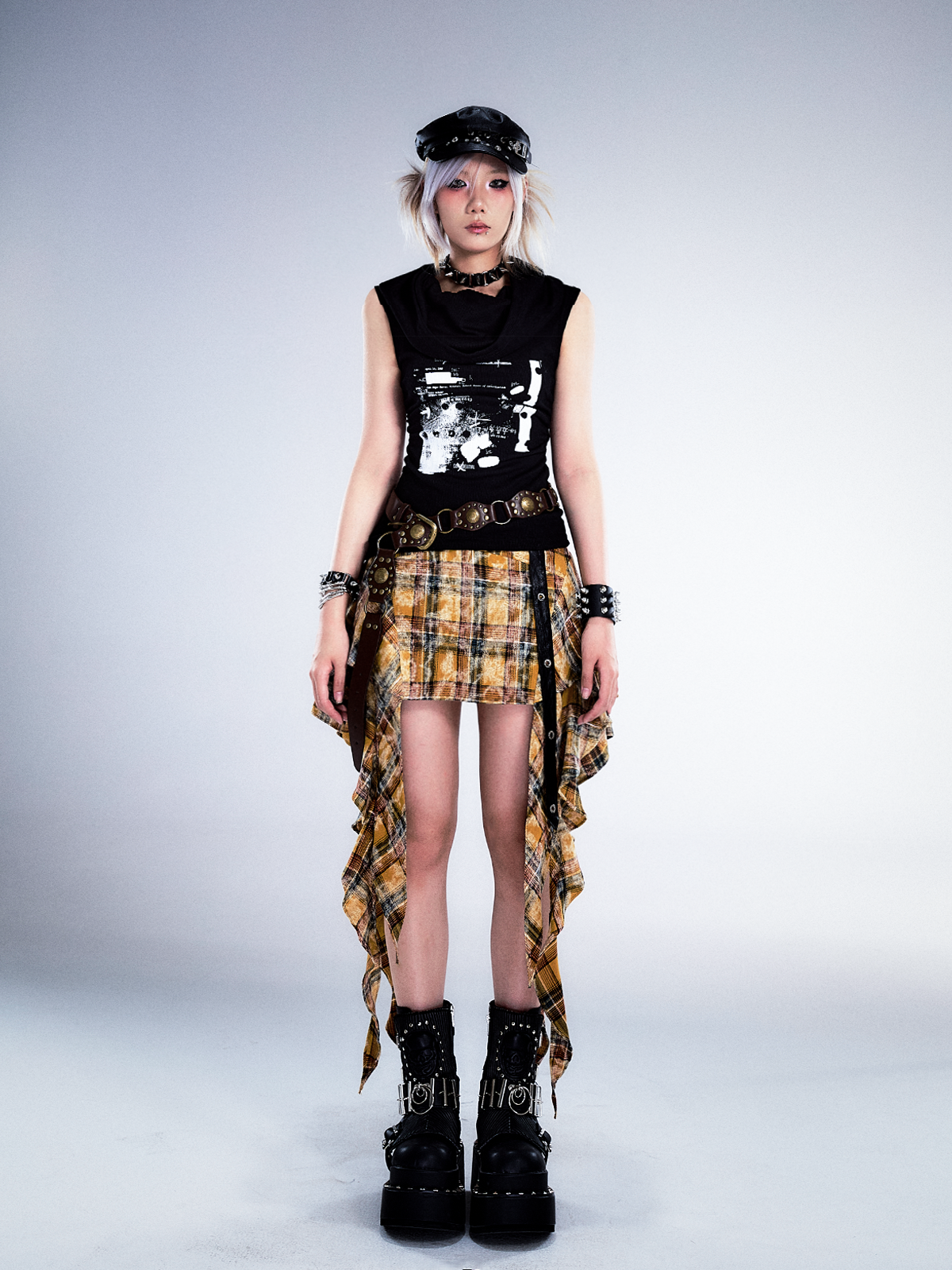 Punk Rock Asymmetrical Plaid A-Line Skirt NA8117