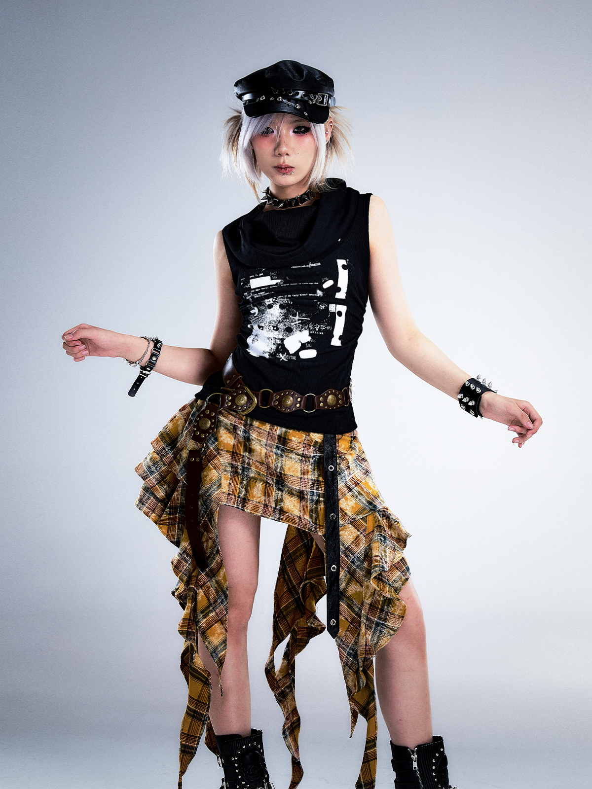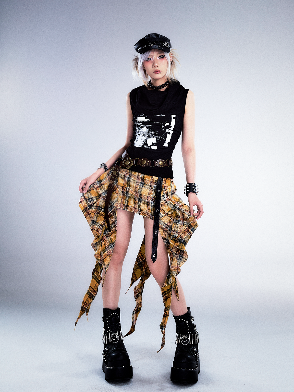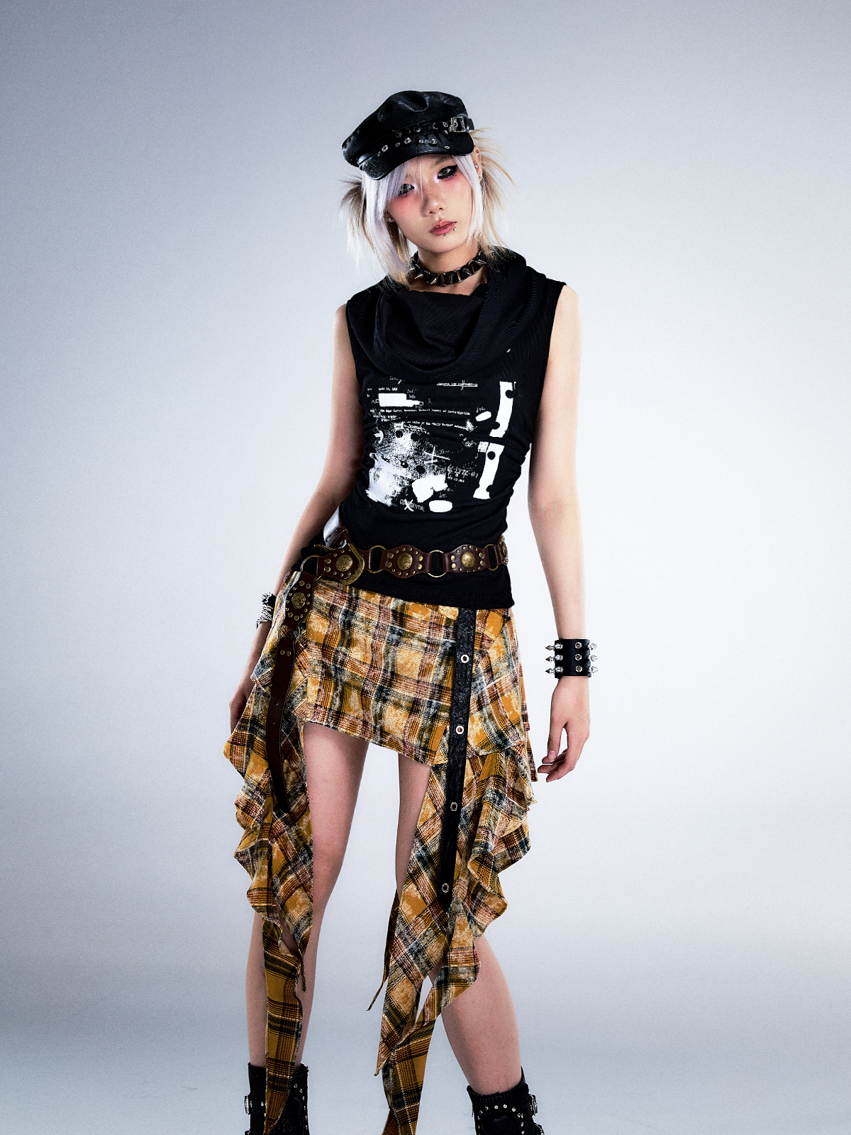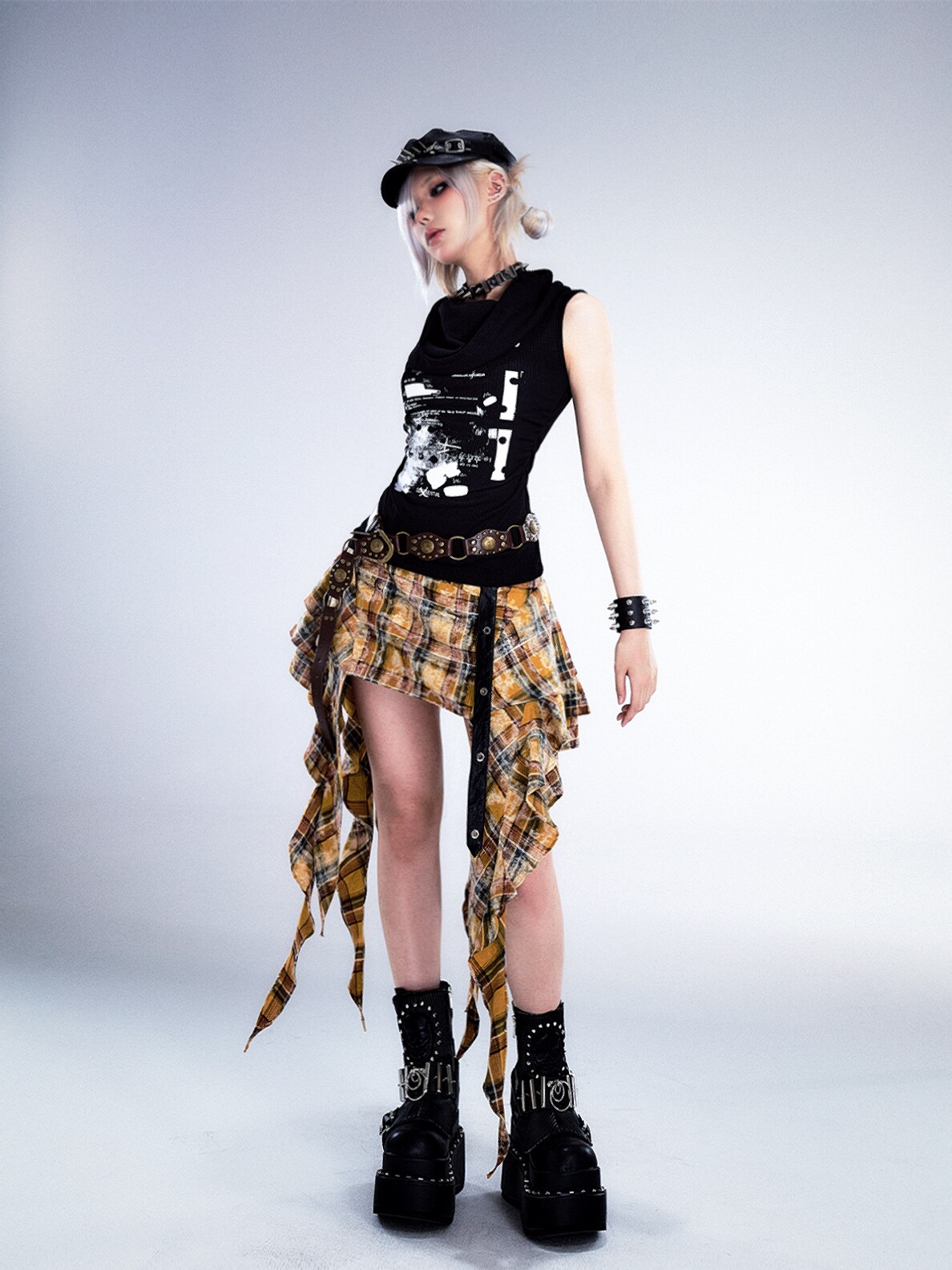 Punk Rock Asymmetrical Plaid A-Line Skirt NA8117