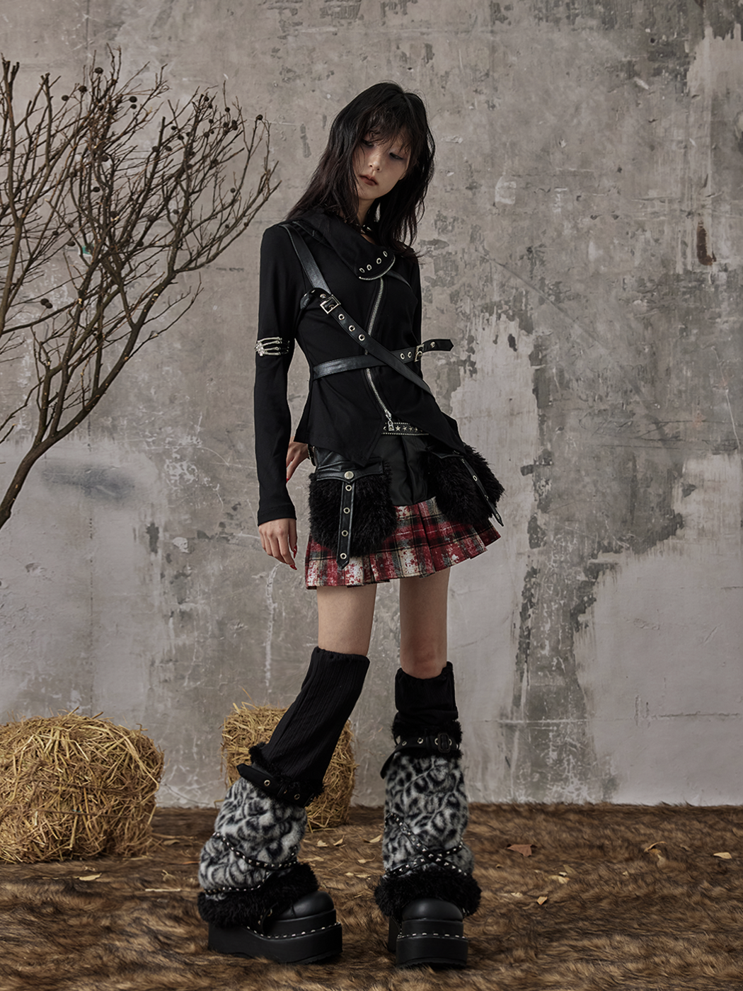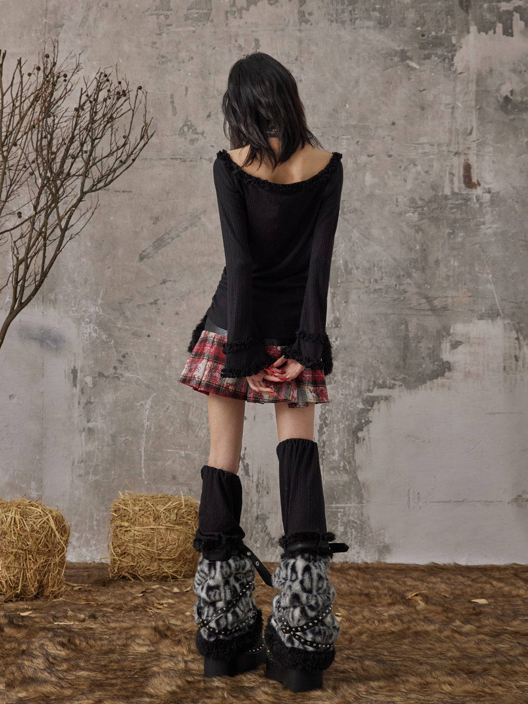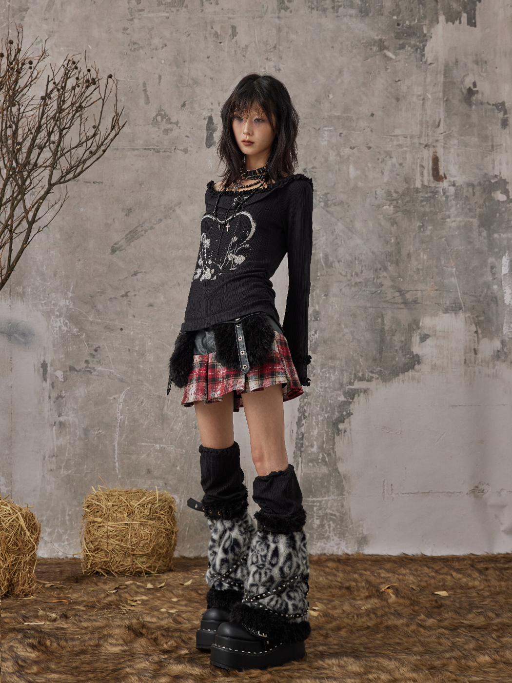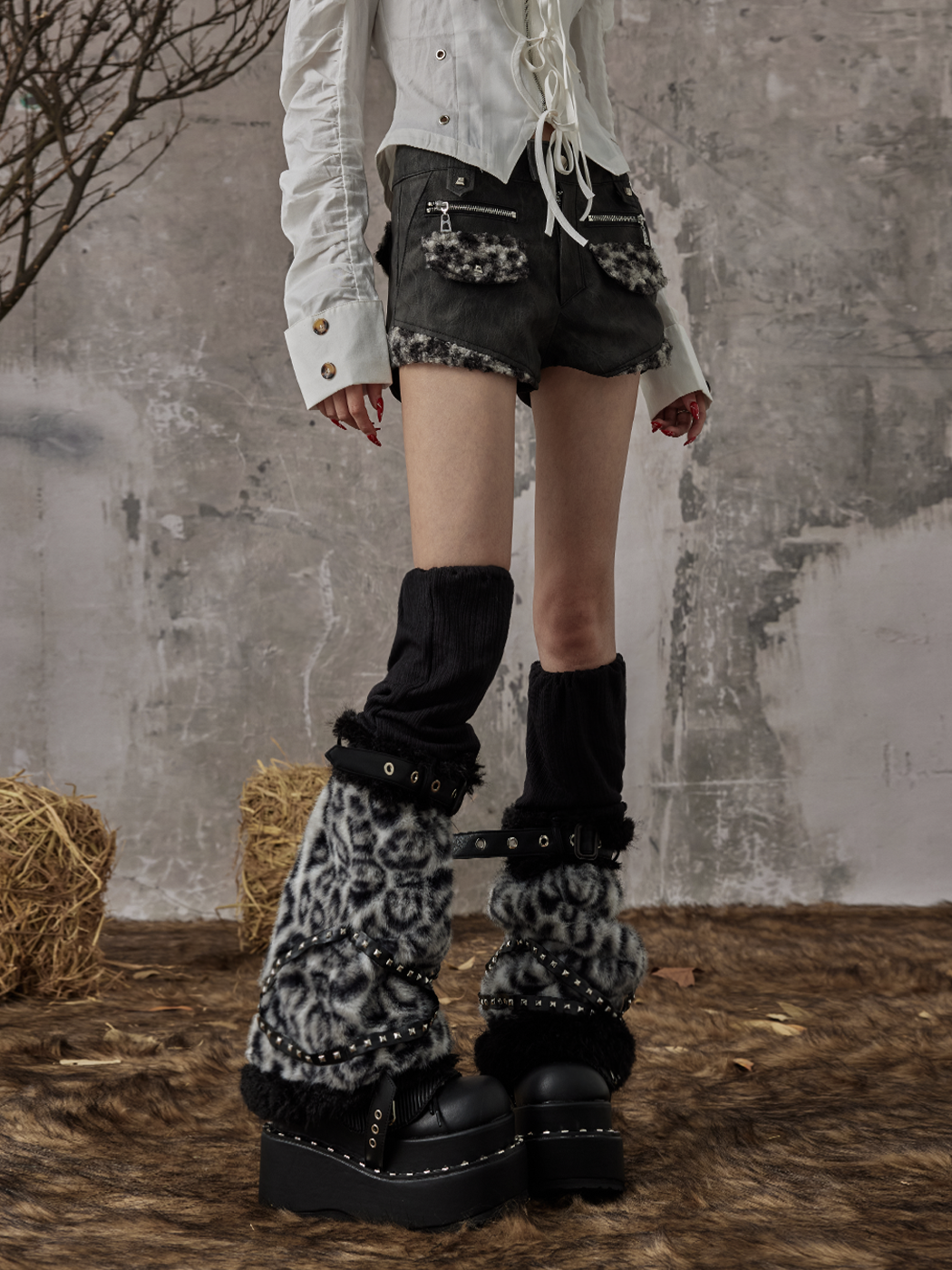 Leopard Patchwork Studs Fuzzy Leg Warmers NA8188