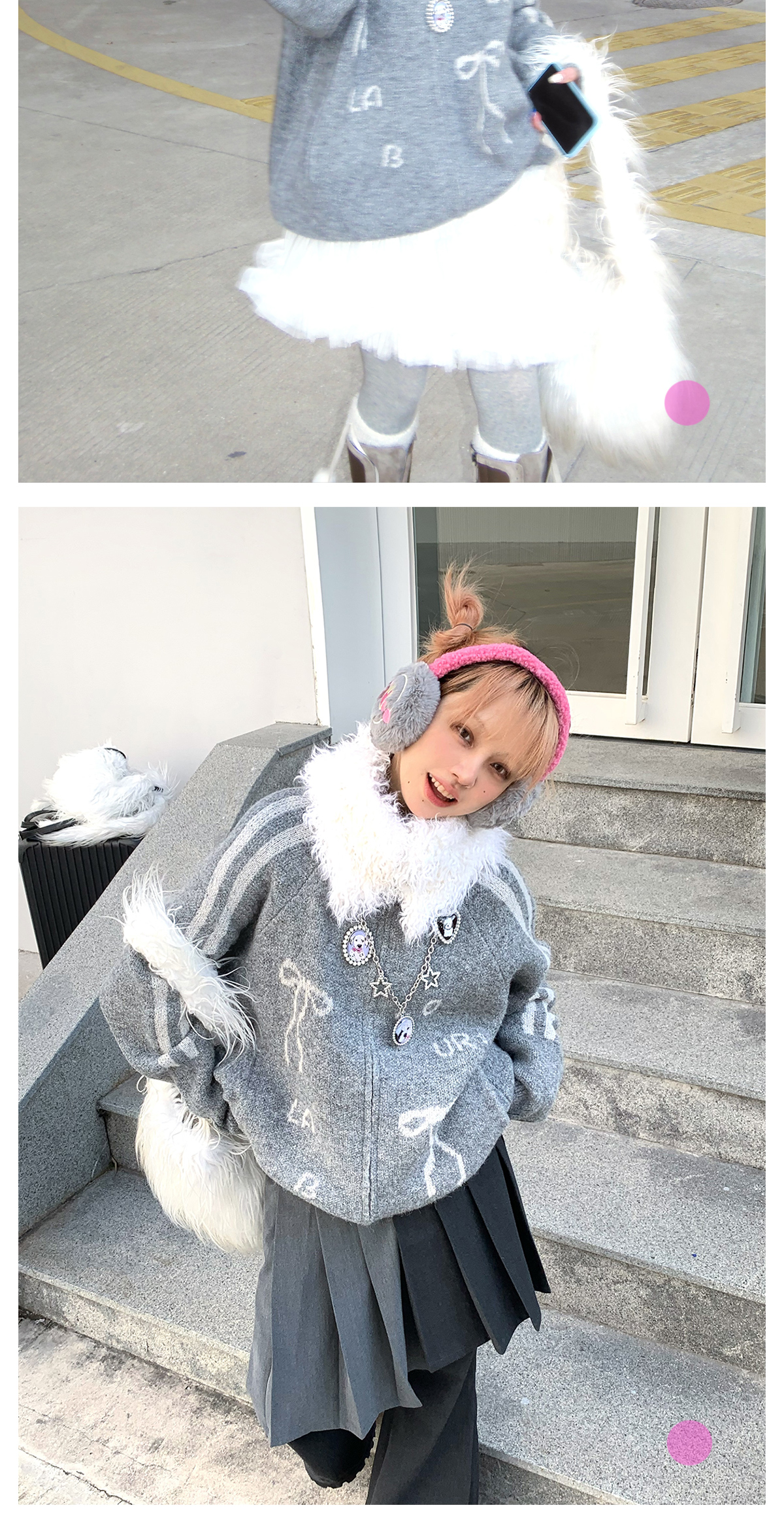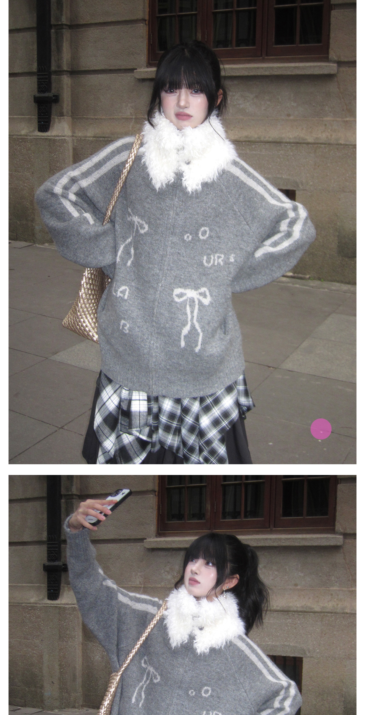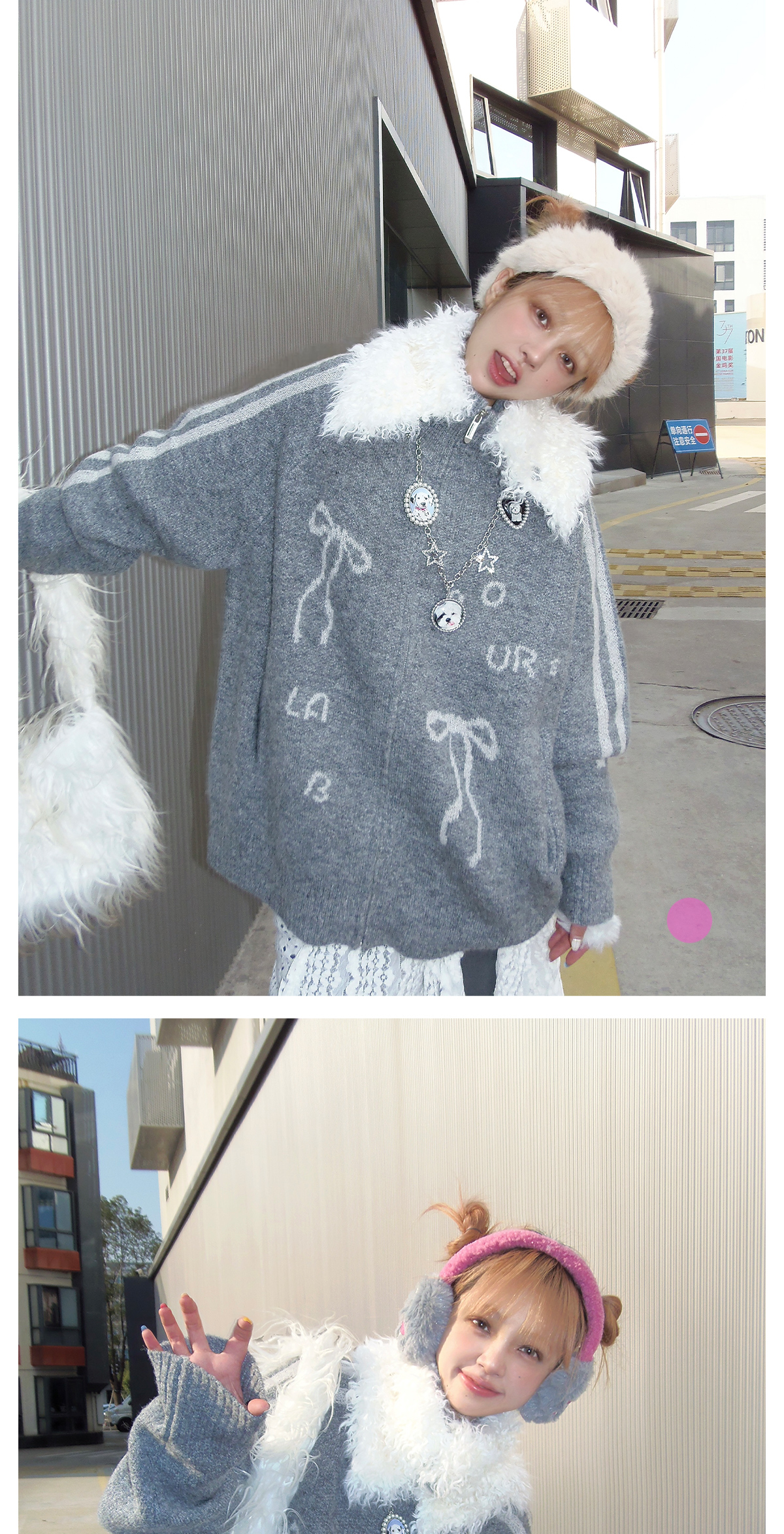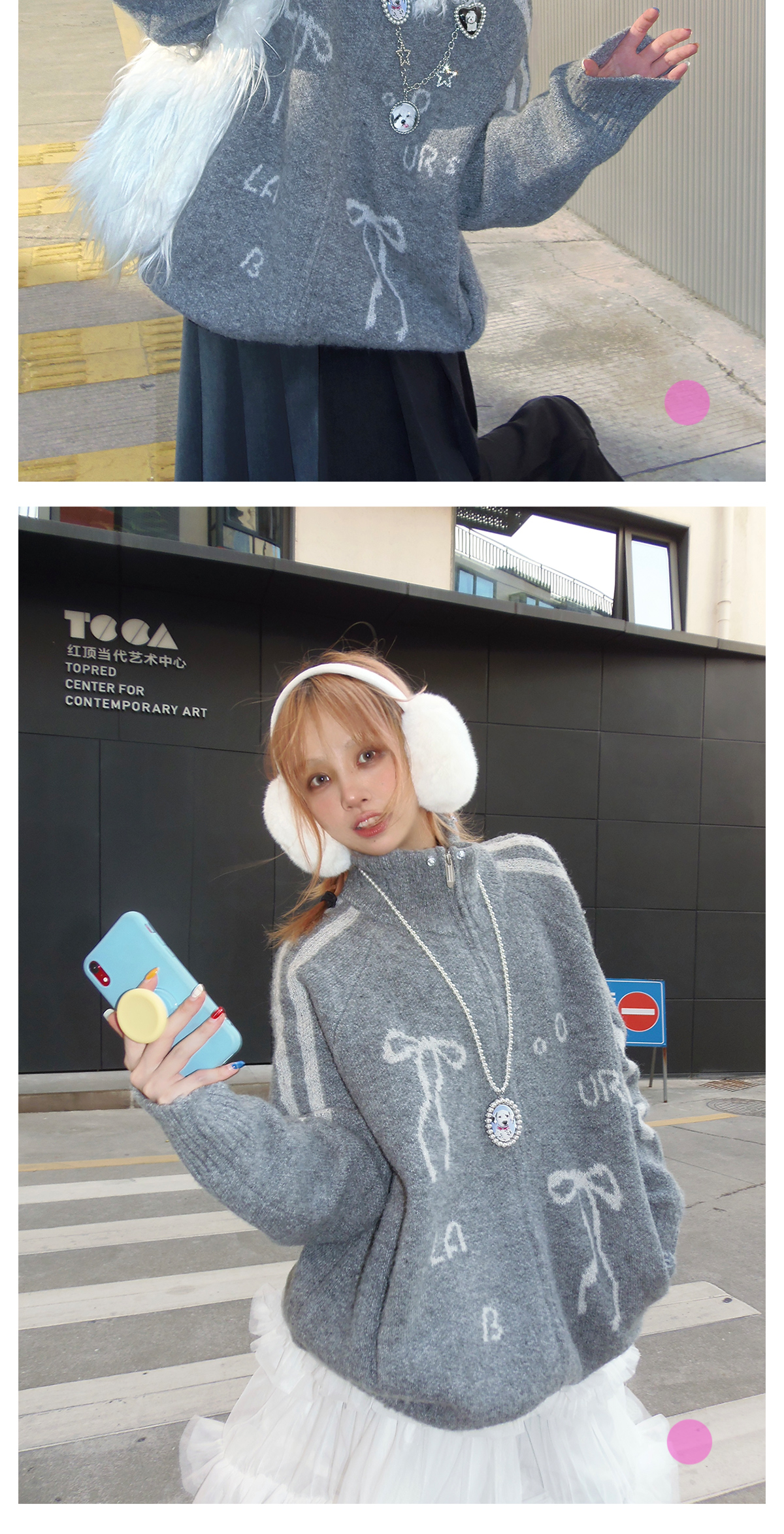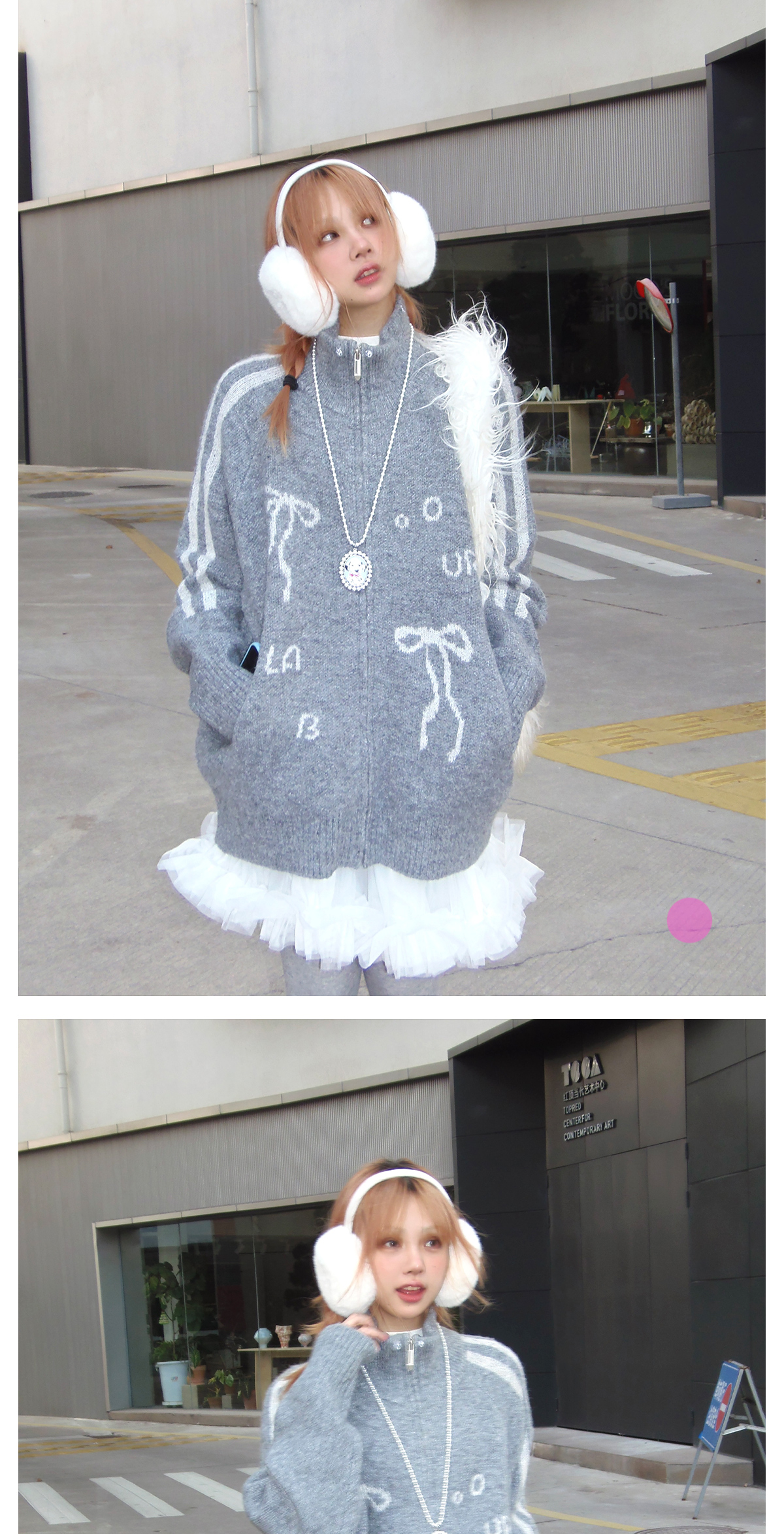 Bow Jacquard Zipper Knit Cardigan NA8244