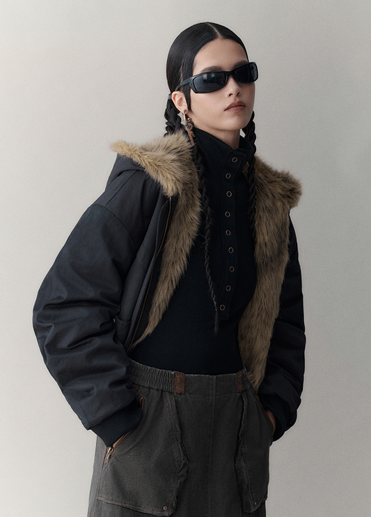 Reversible Fake Fur Short Hooded Jacket NA7890