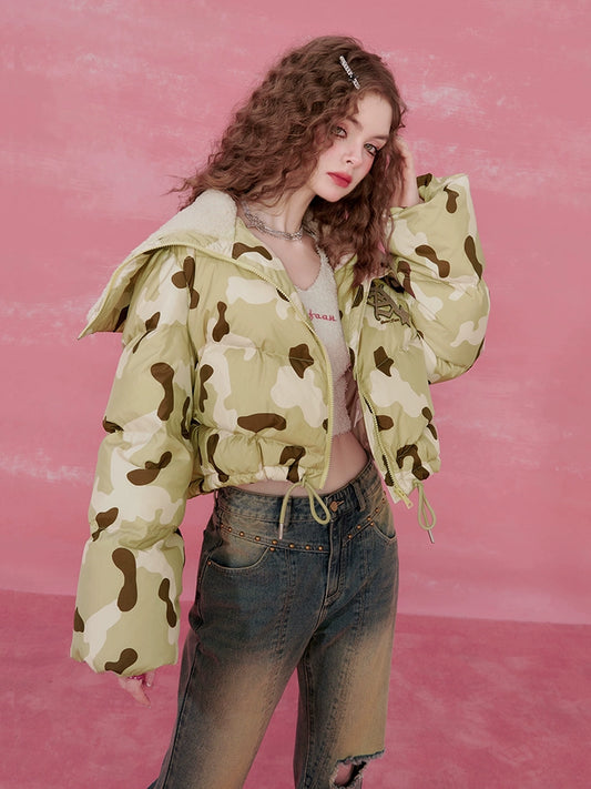 Camouflage Print Oversize White Duck Down Jacket NA6822