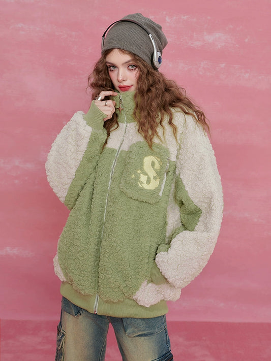 Colorblock Embroidery Fleece-Lined Baseball Jacket NA6804