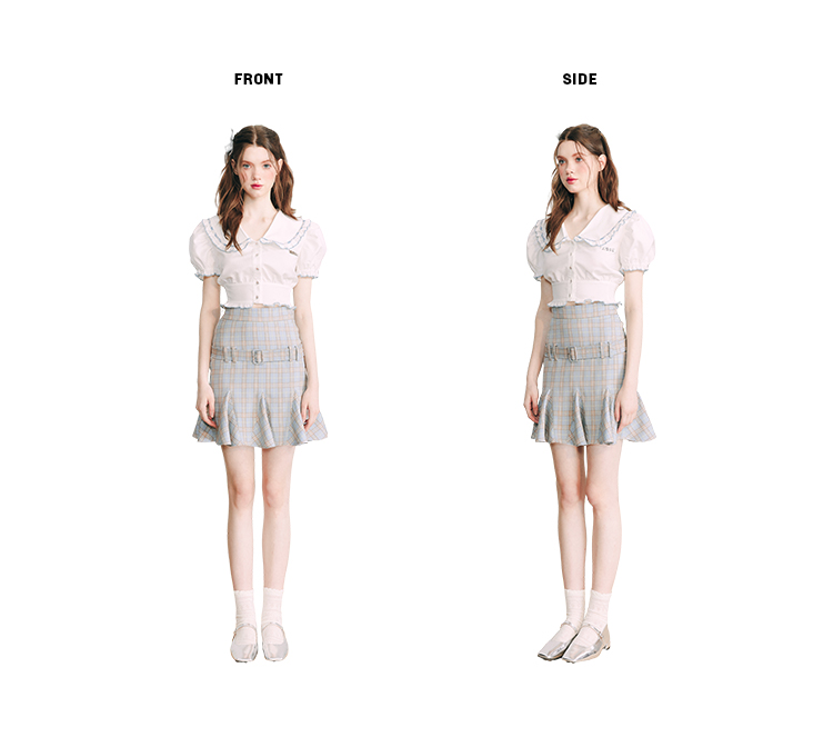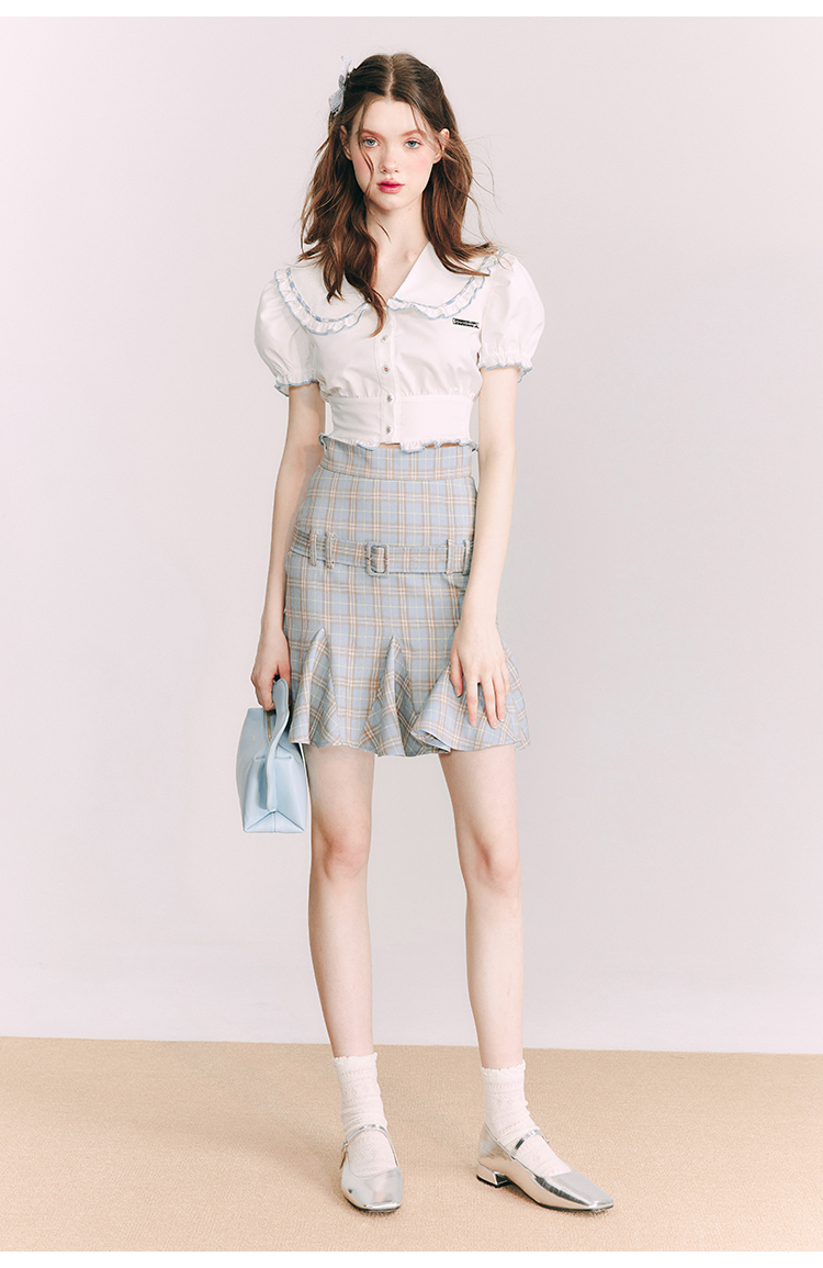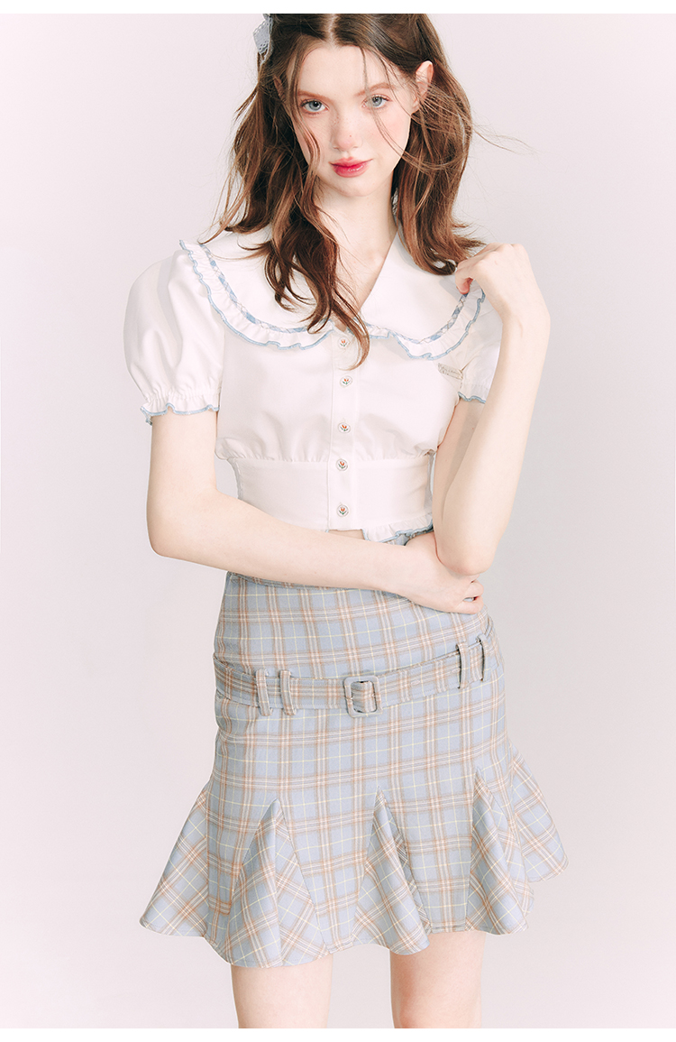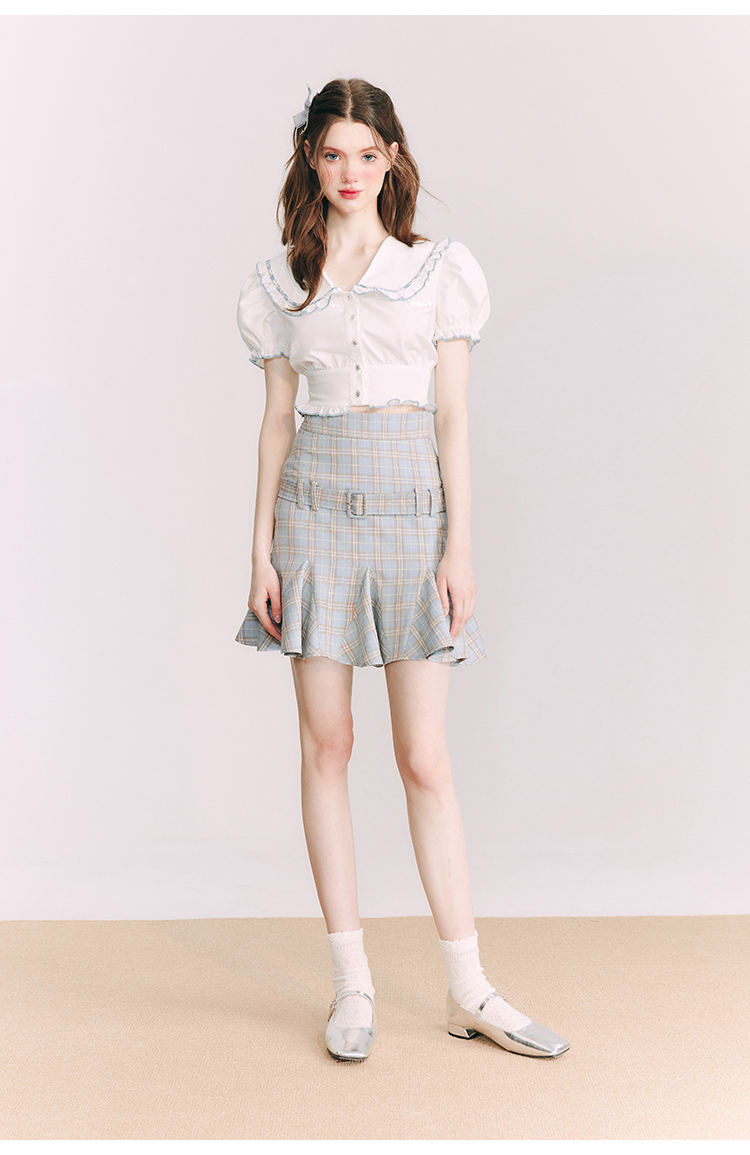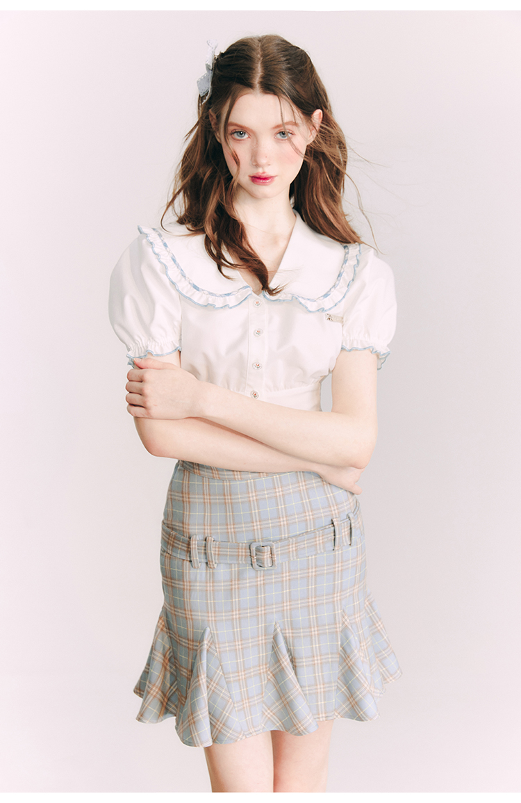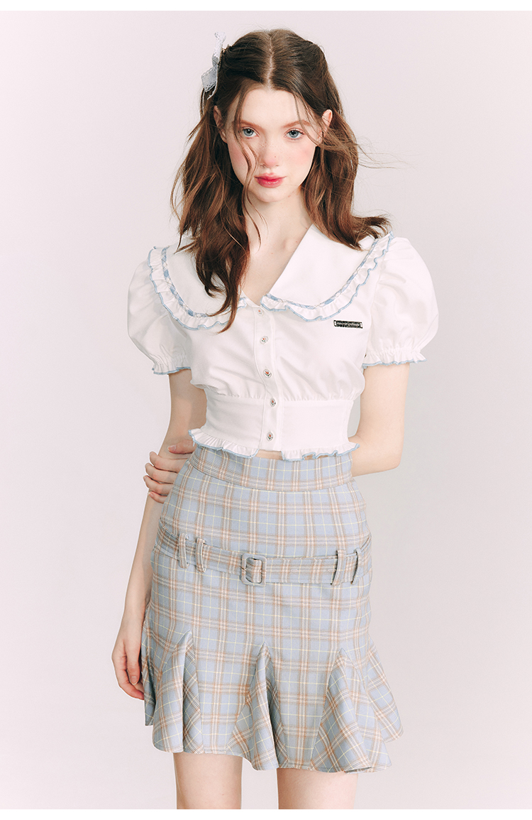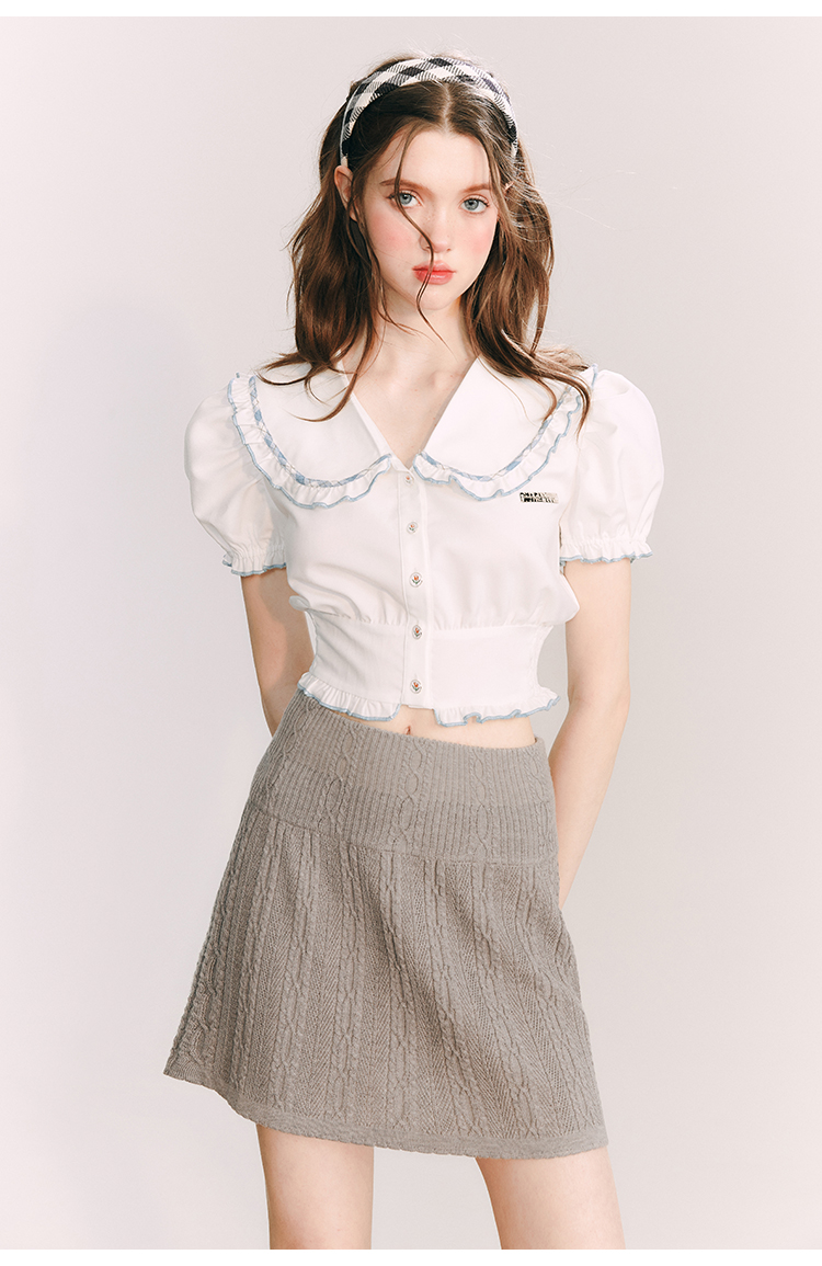 Ruffle Collar Cropped Bubble Sleeves Shirt NA5874