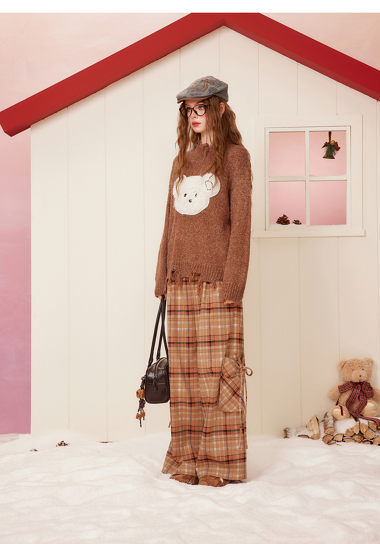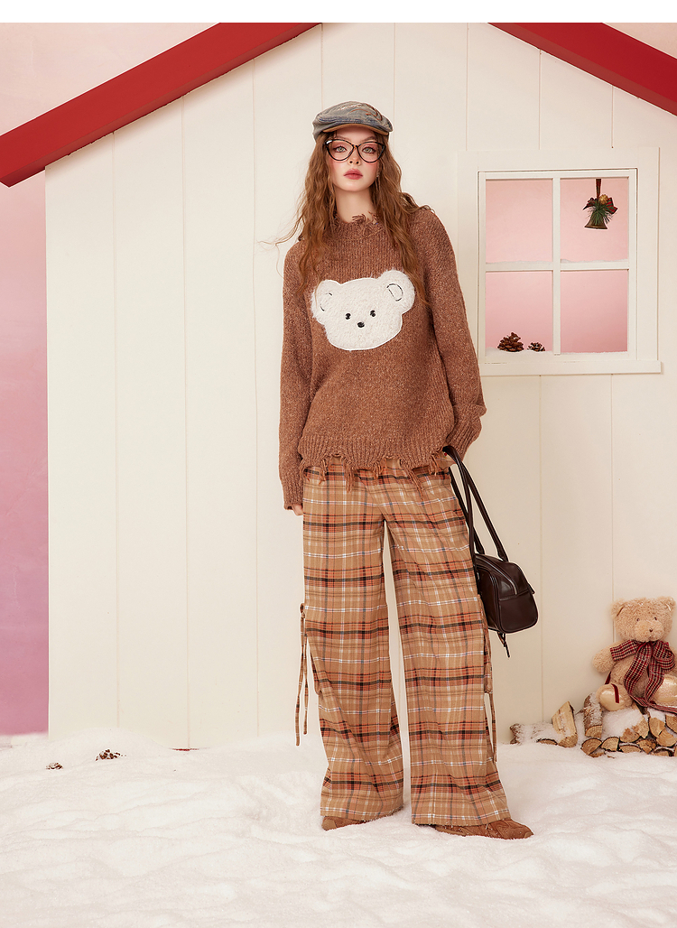 Bear Design Fringe Knit Sweater NA6945