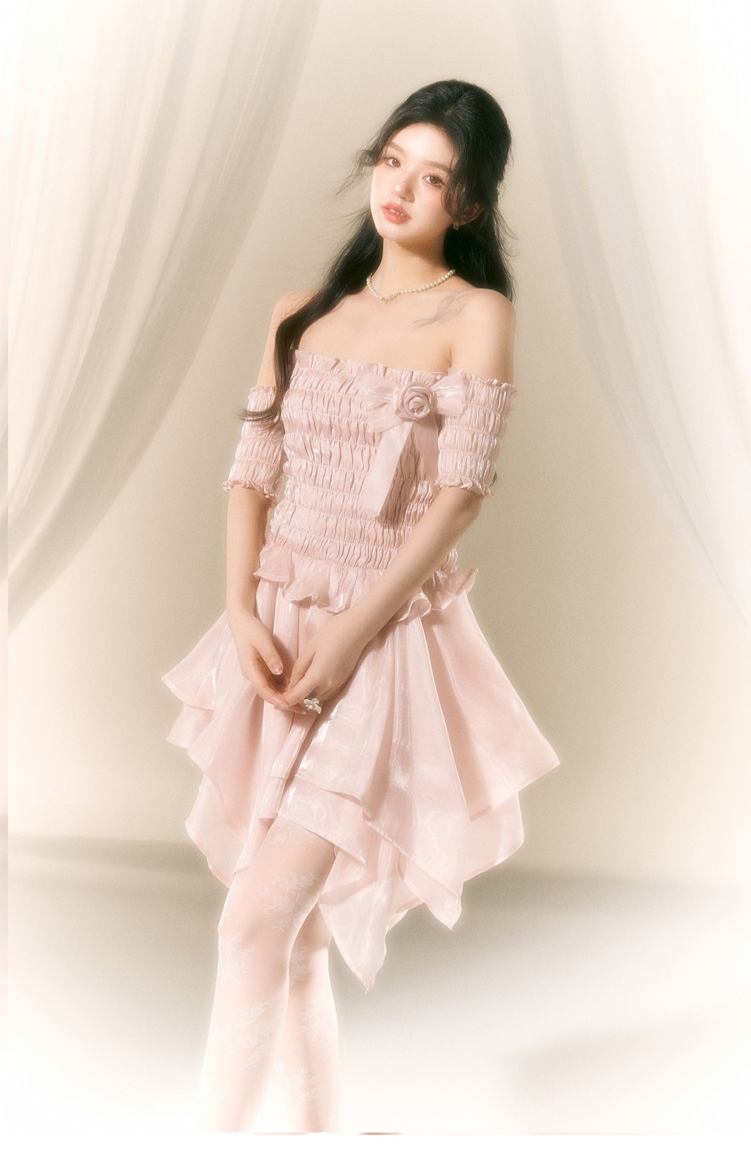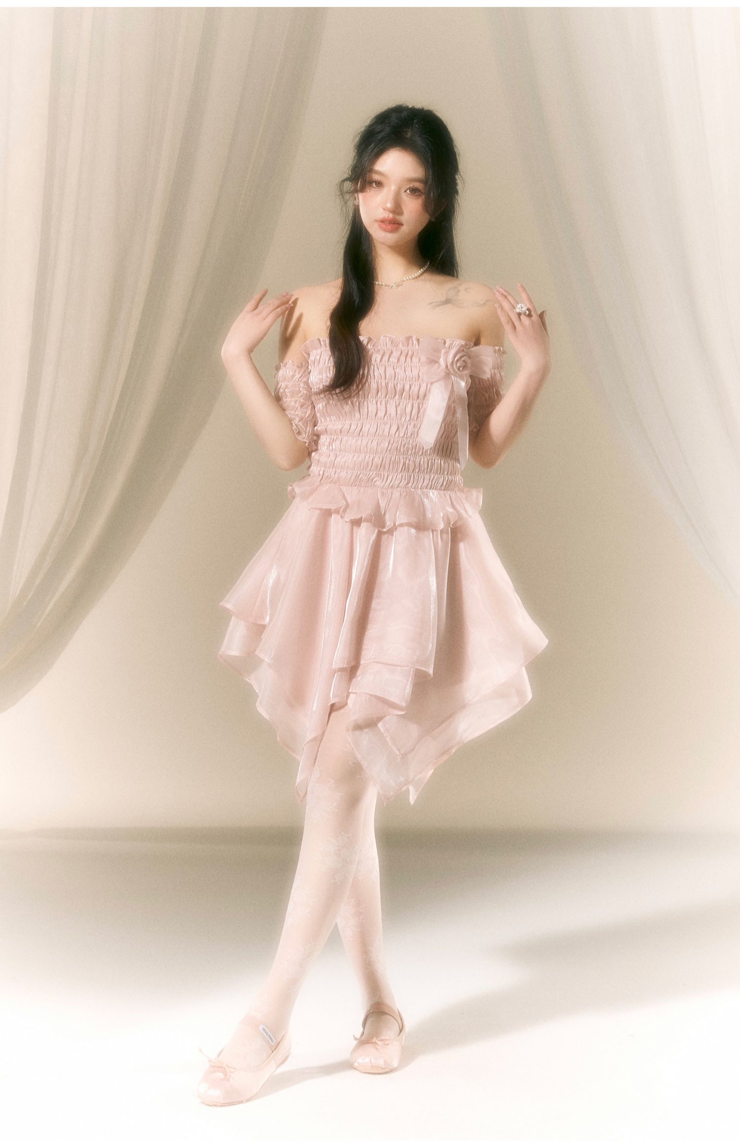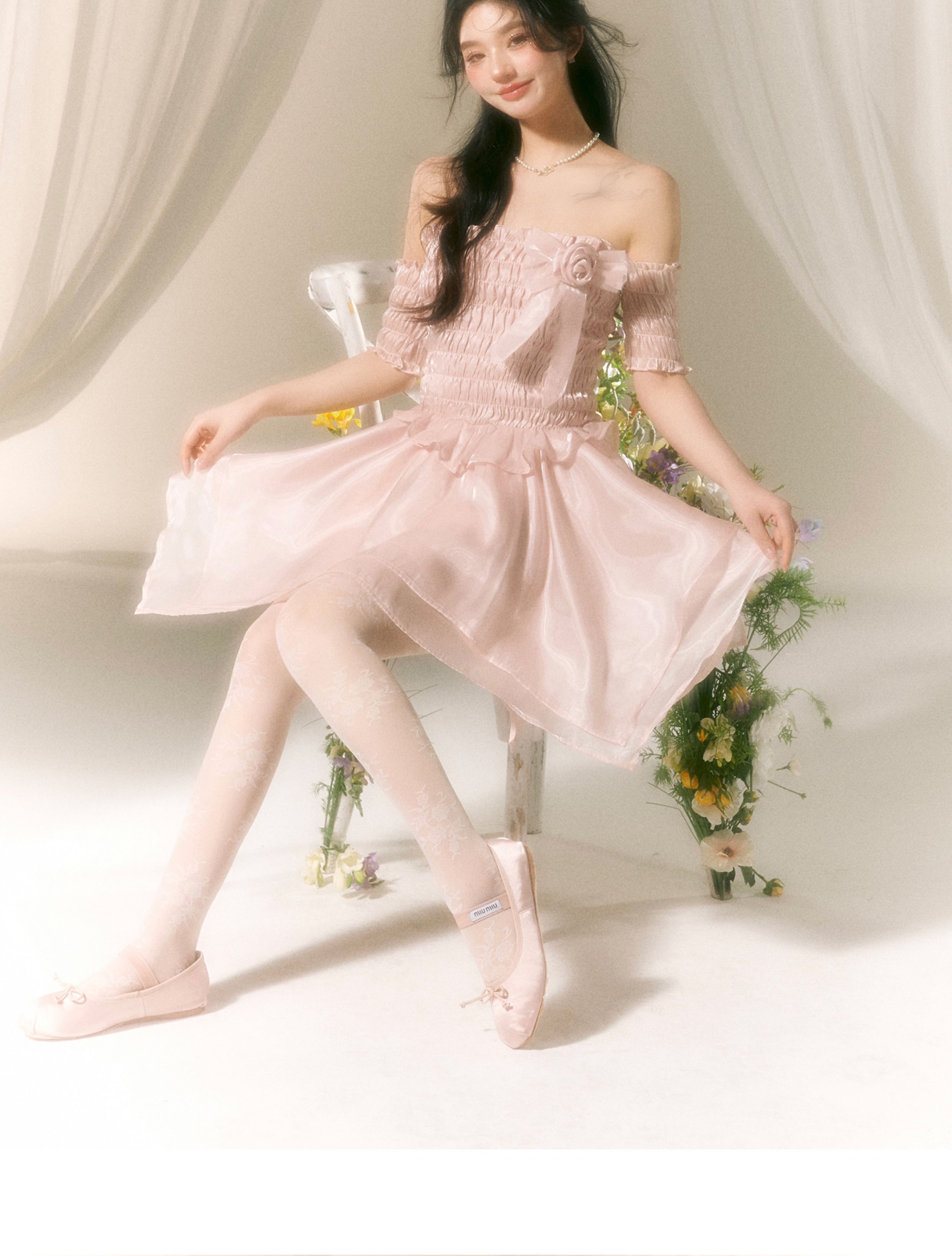 Ballet-Inspired Off-Shoulder Satin Dress NA7419