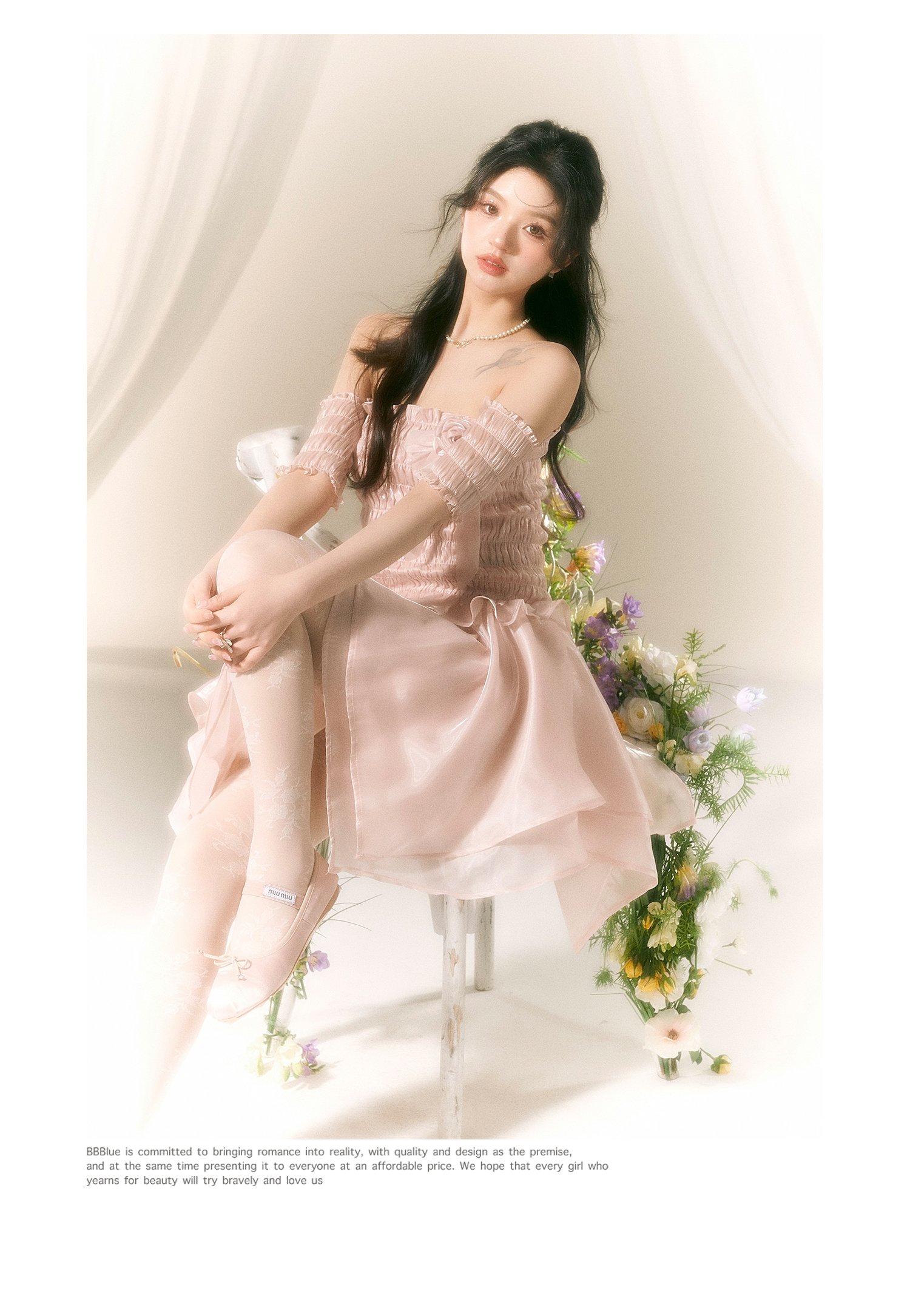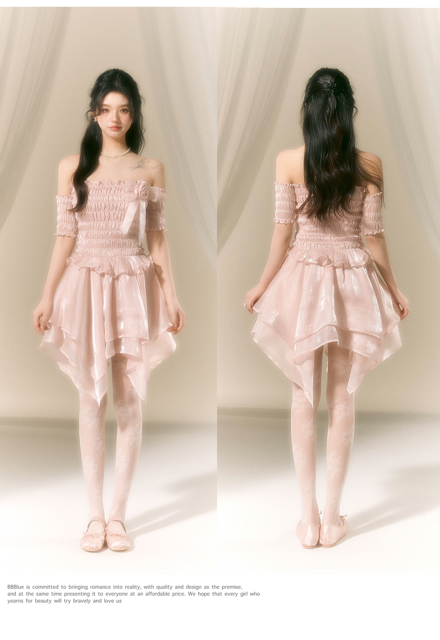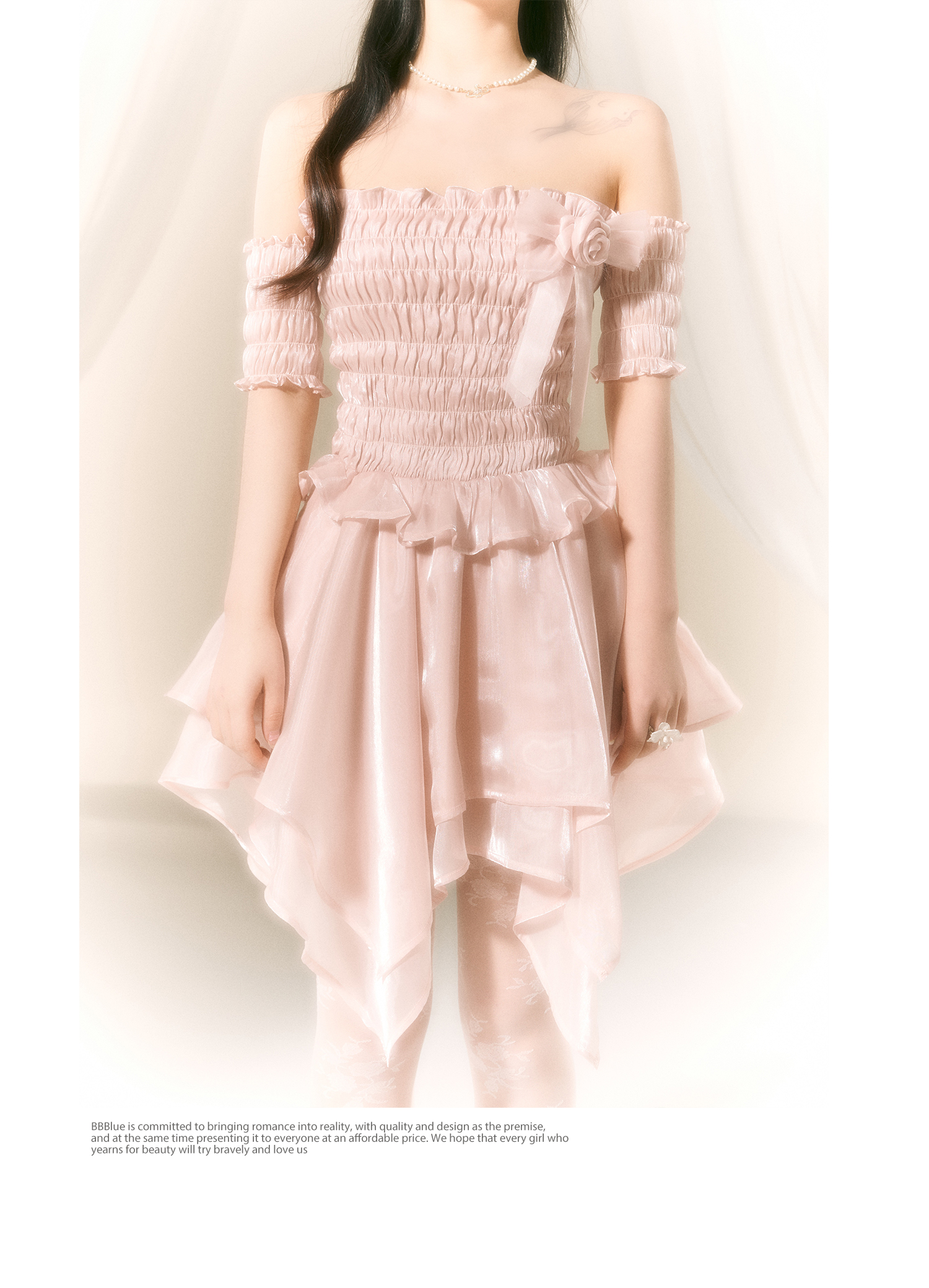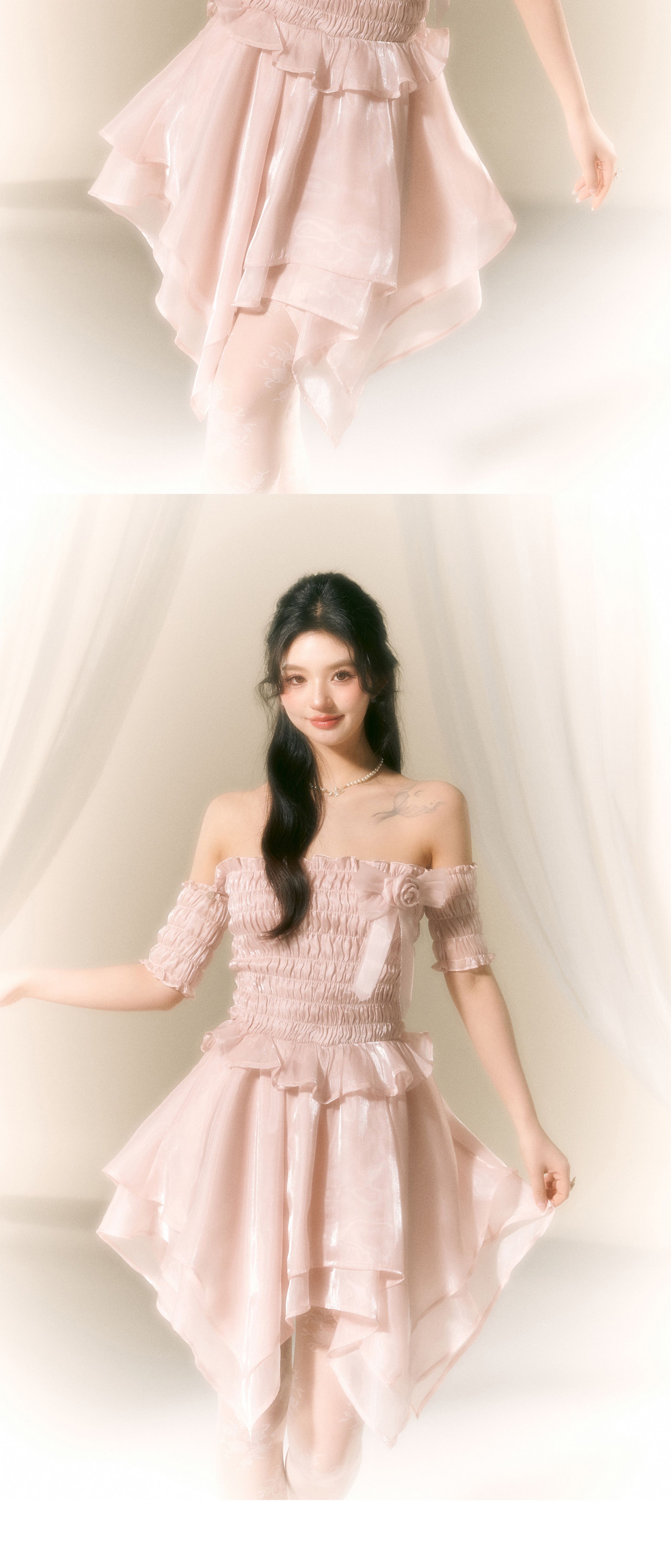 Ballet-Inspired Off-Shoulder Satin Dress NA7419