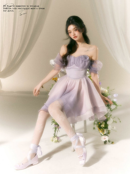 Ballet-Inspired Off-Shoulder Satin Dress NA7419