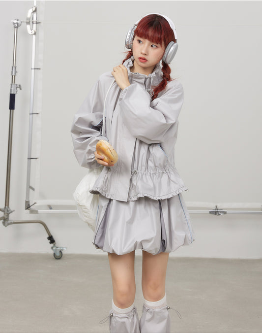 Bow Patchwork Oversize Techwear Zipper Jacket NA8239