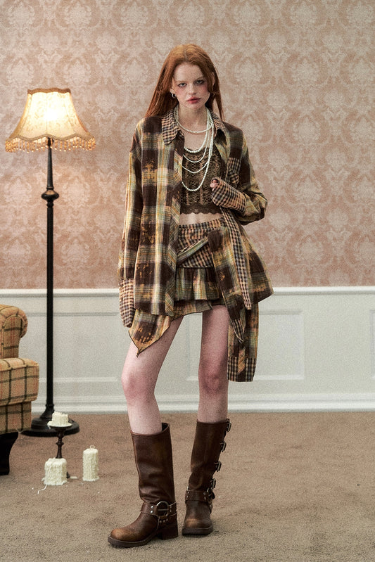 Patchwork Plaid Shirt & Patchwork Plaid Skirt Setup NA4721