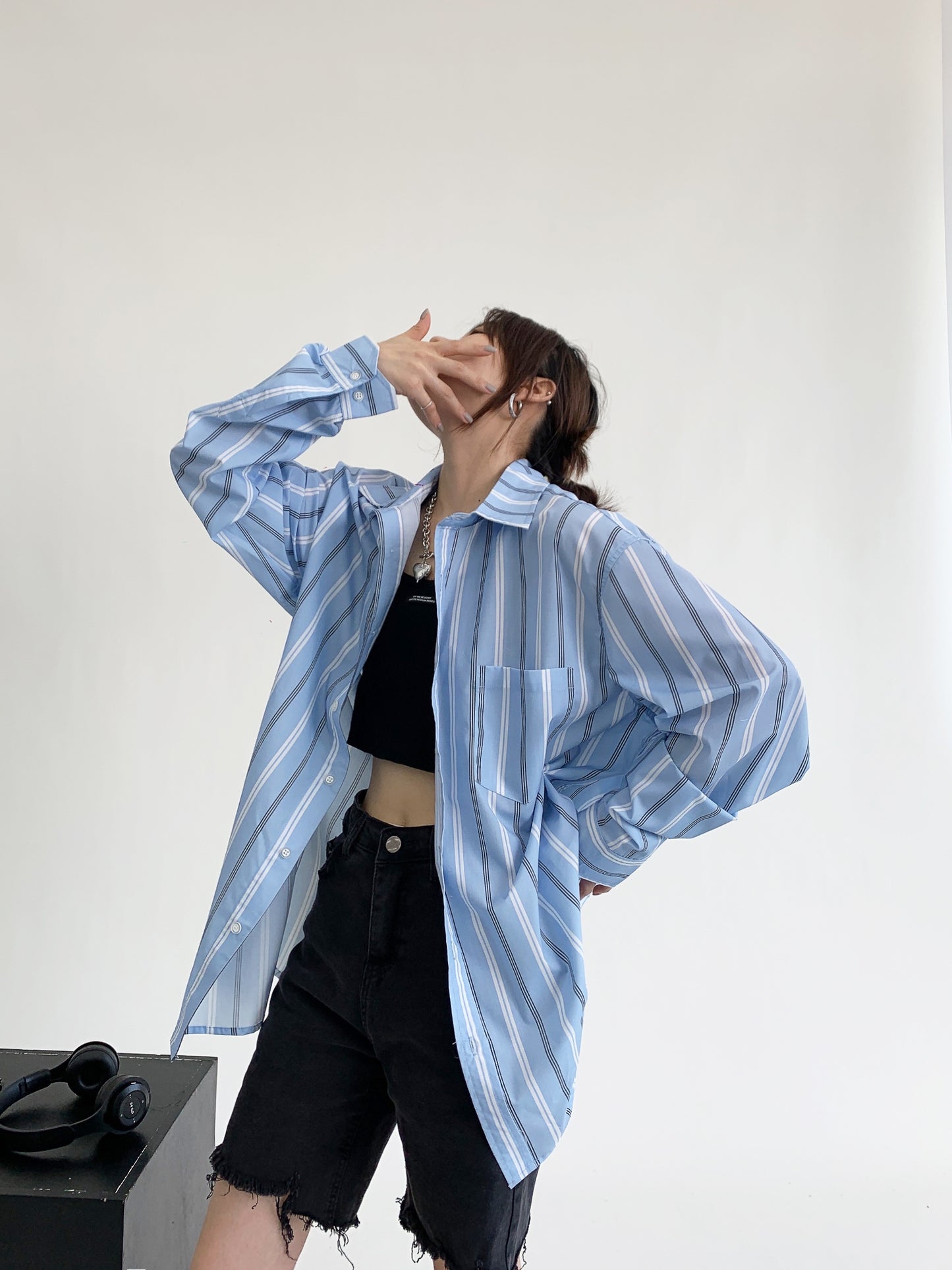 Unisex Oversize Stripe Long-Sleeve Shirt NA2774