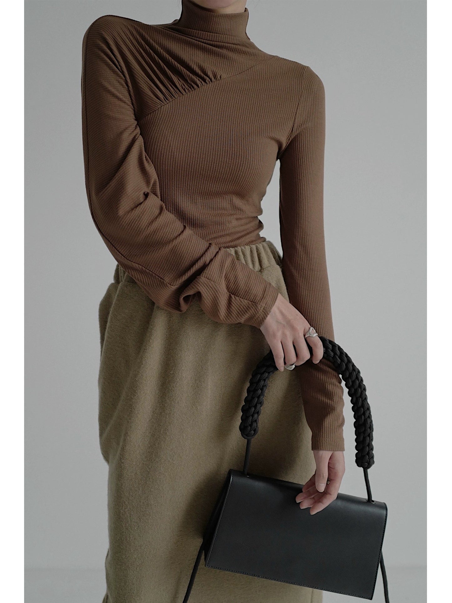 Stand Neck Asymmetric Long Sleeve Knit Top NA4198