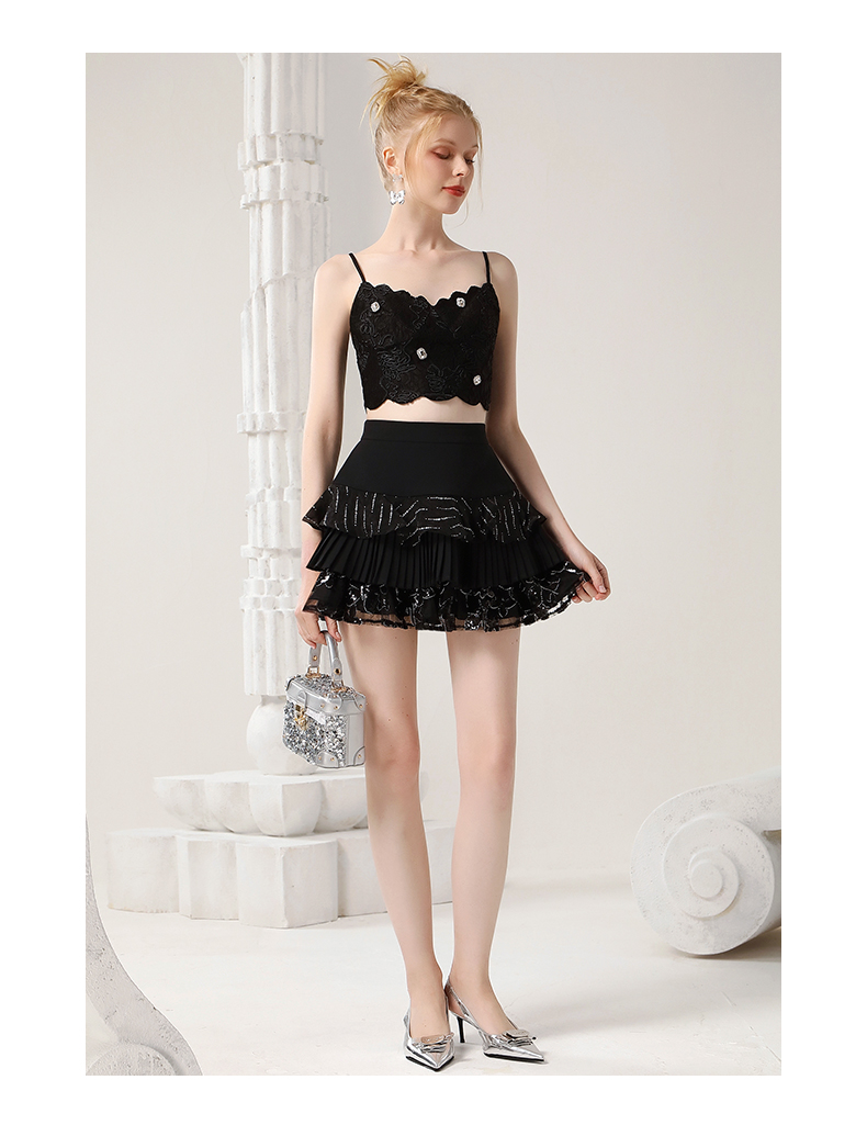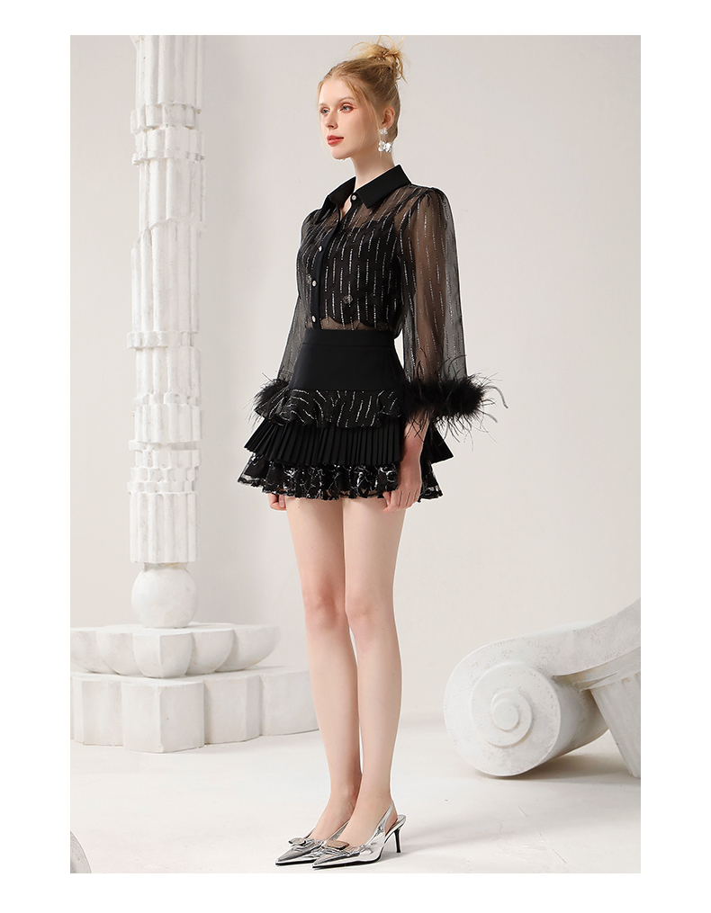 Sheer Shirt & Camisole & Layered Skirt Setup NA5481