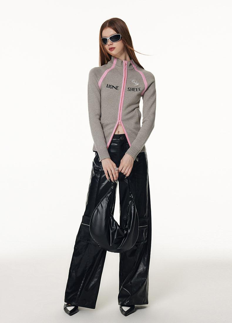 High-neck Raglan-sleeve Chic Zipper Cardigan WNW1487