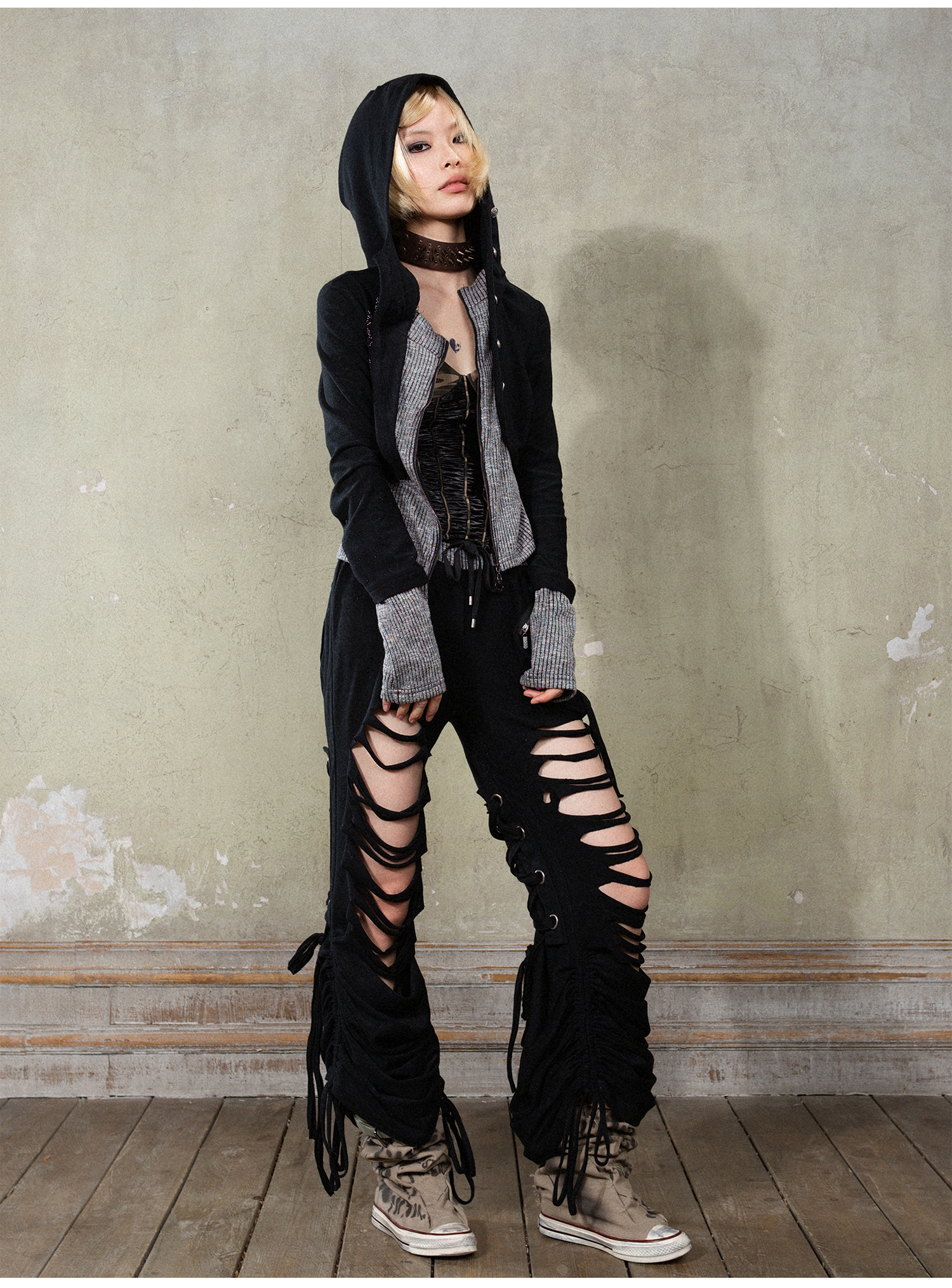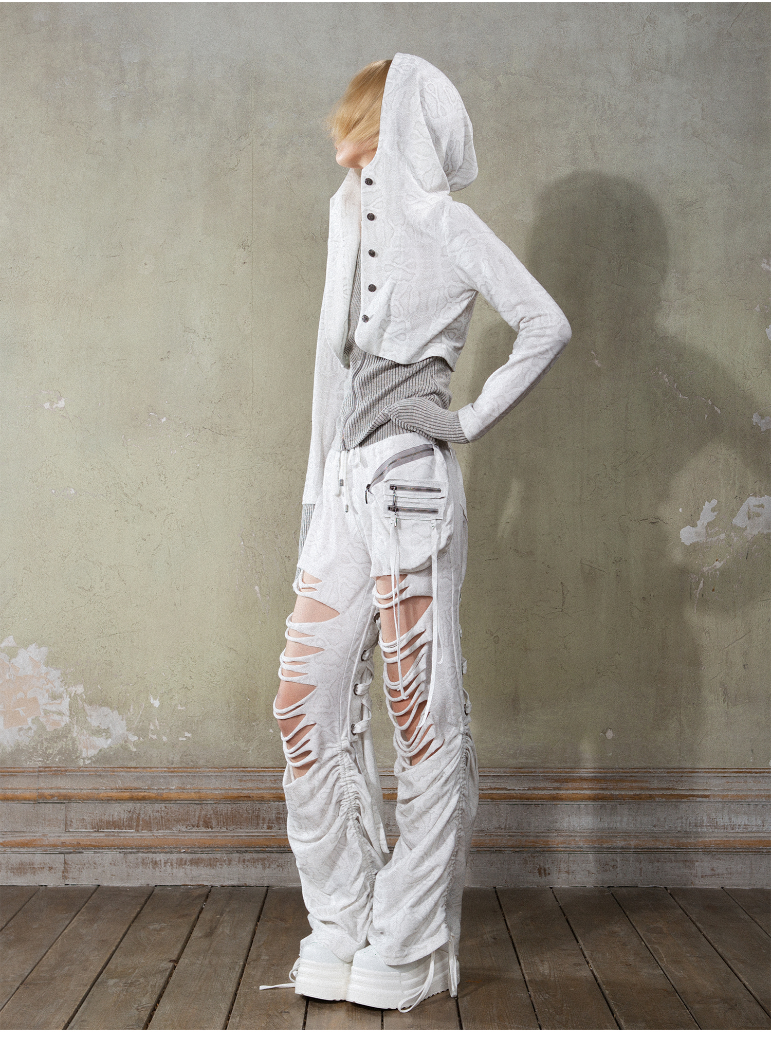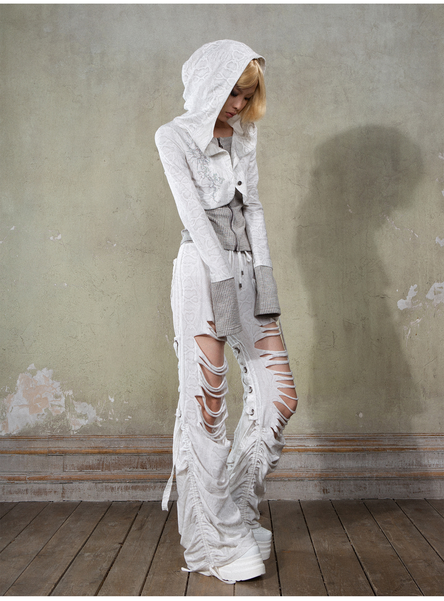 Fake Layered Long Sleeve Hooded Knit Cardigan NA6178