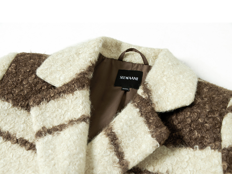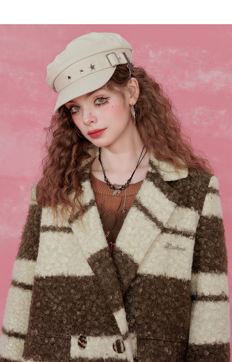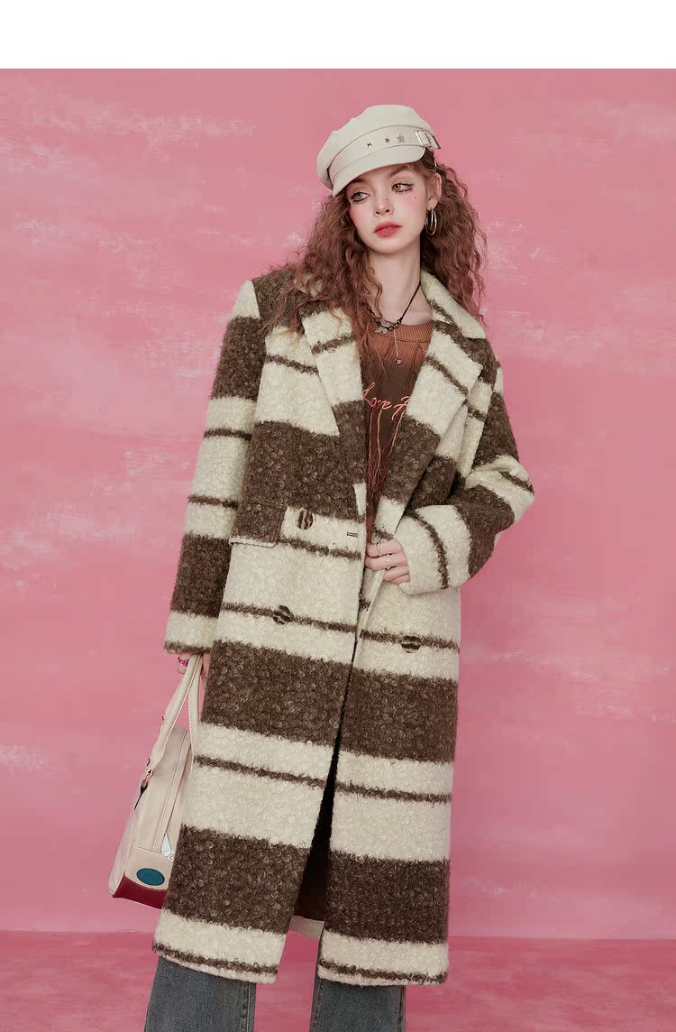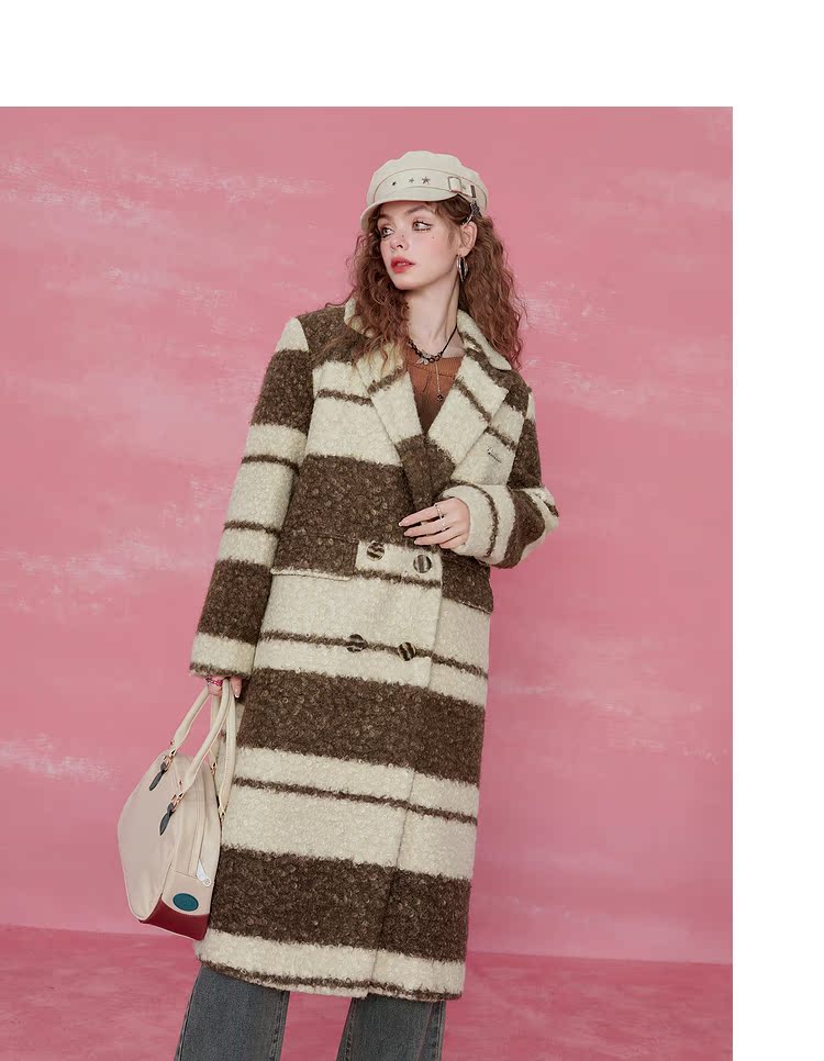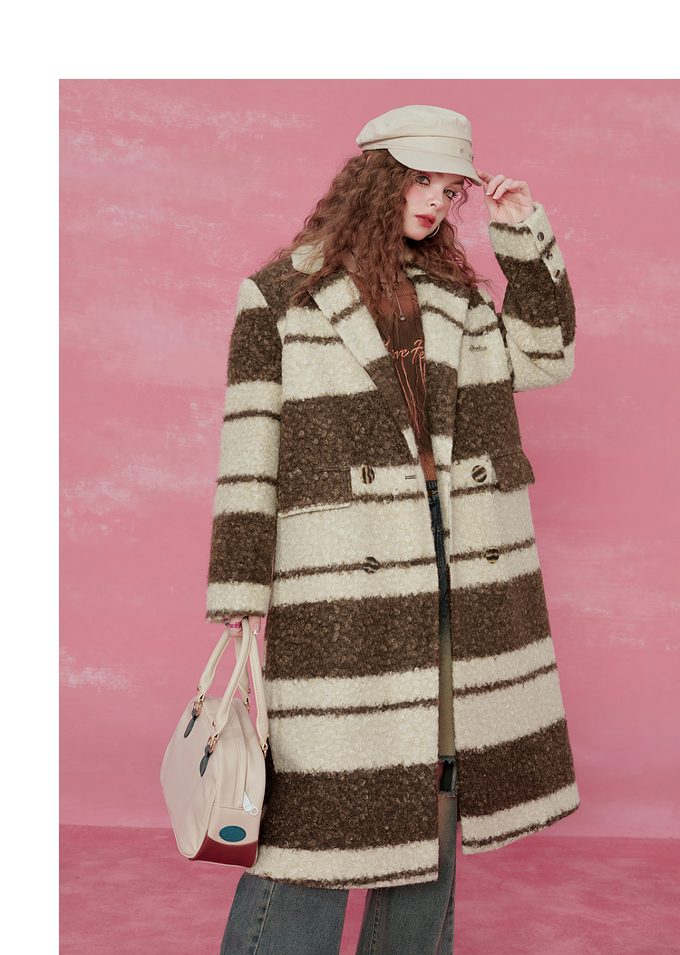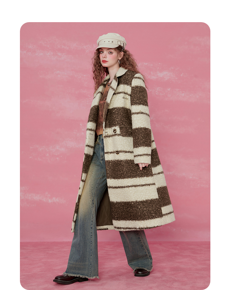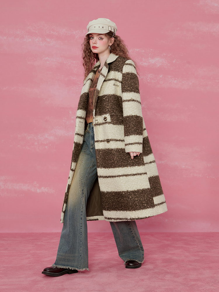 Contrast Stripe Fake Wool Mid-Length Coat NA6828