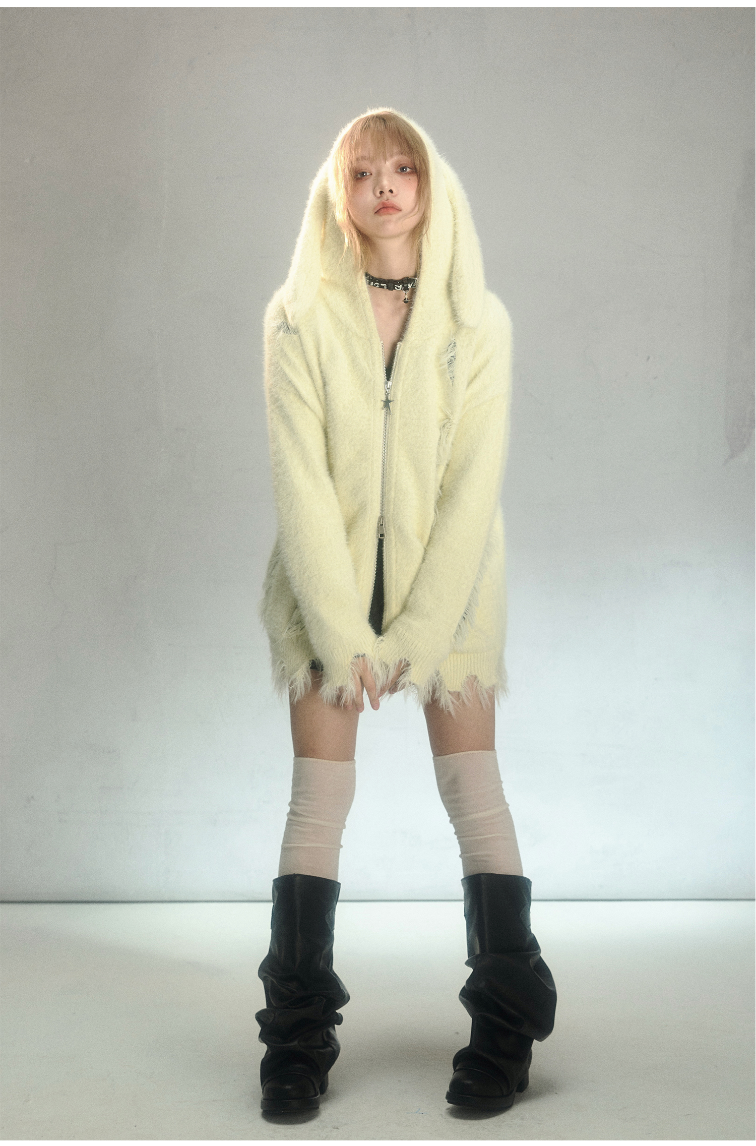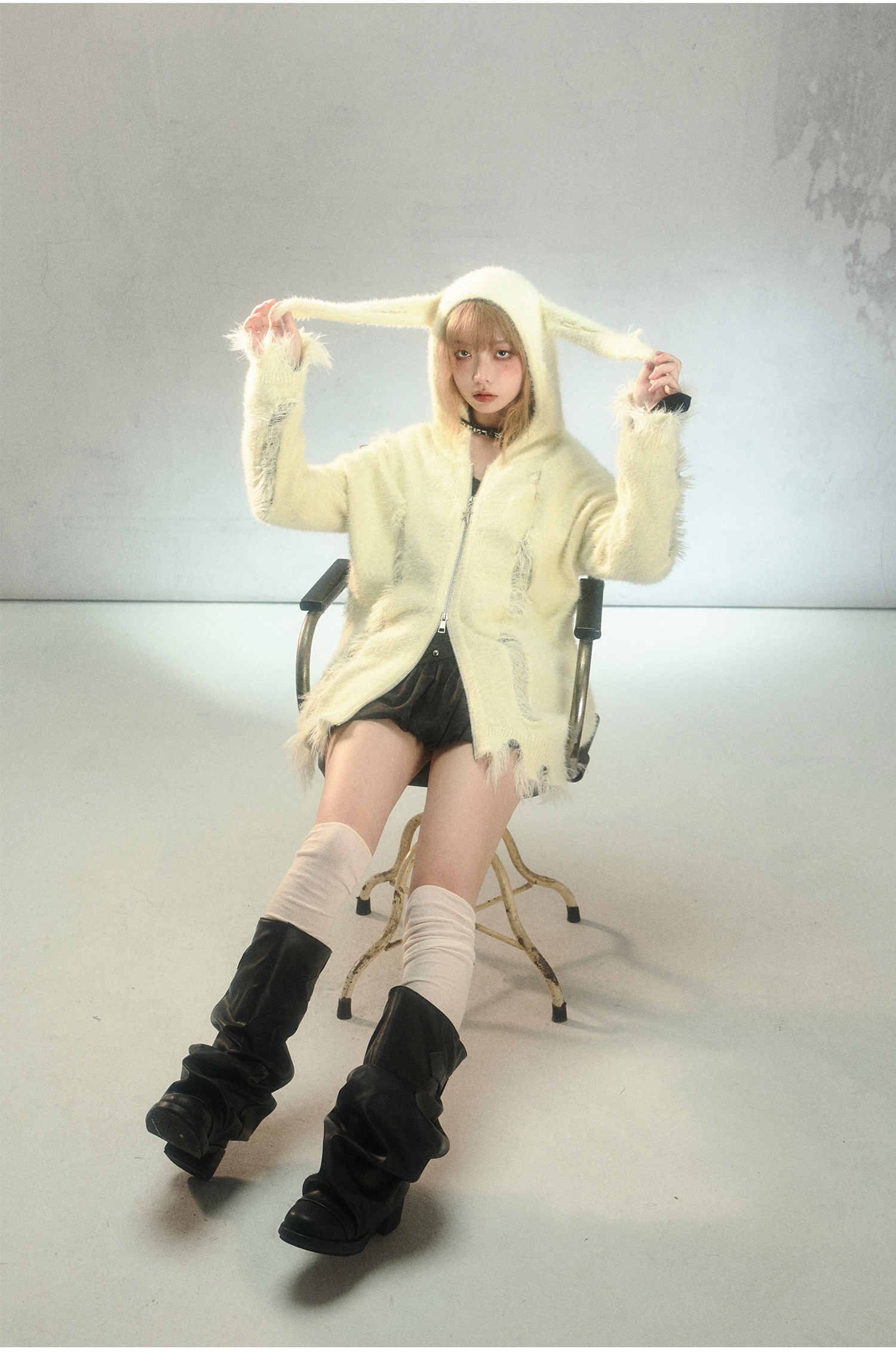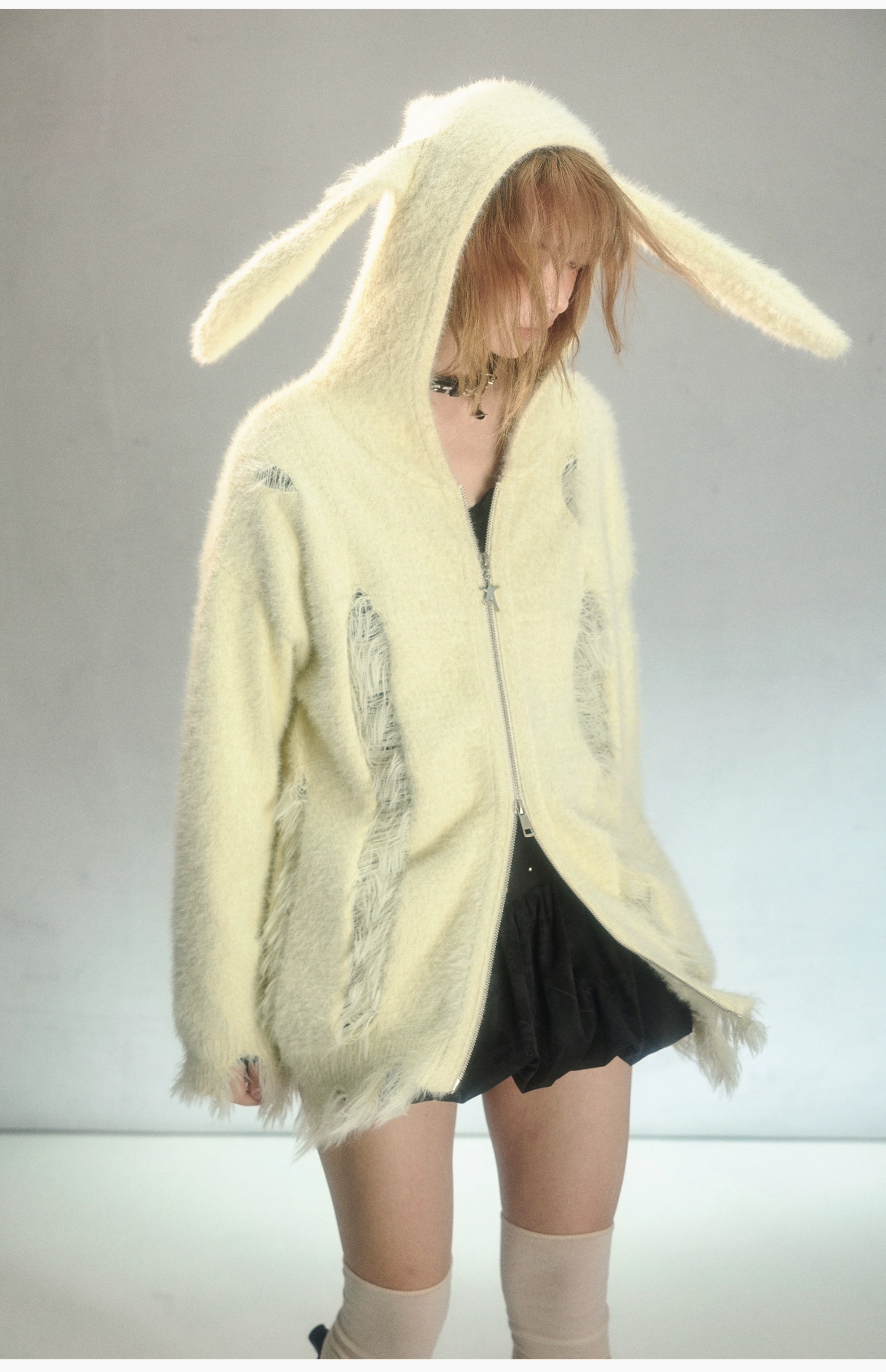 Rabbit Ear Zipper Knit Hoodie NA6967