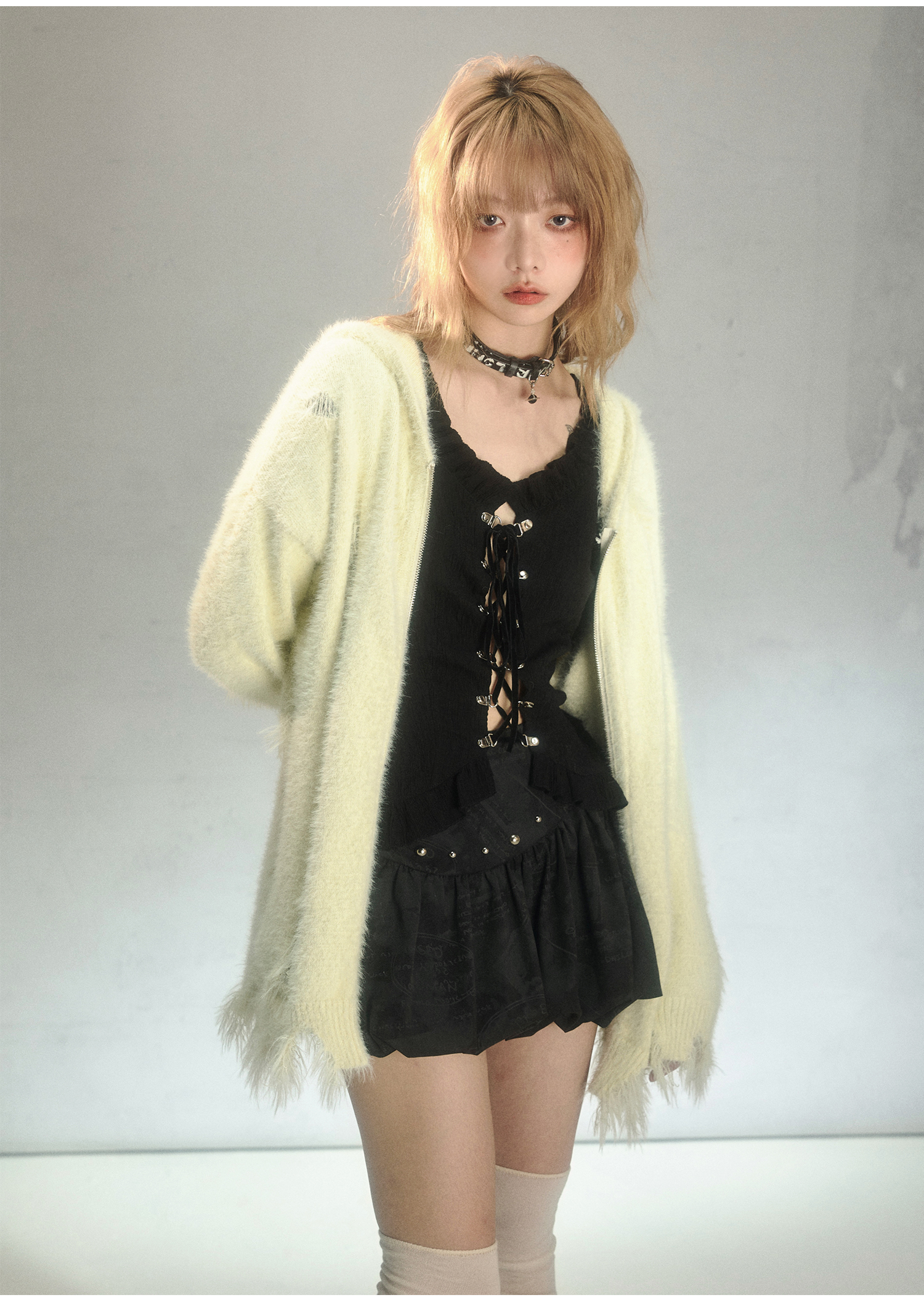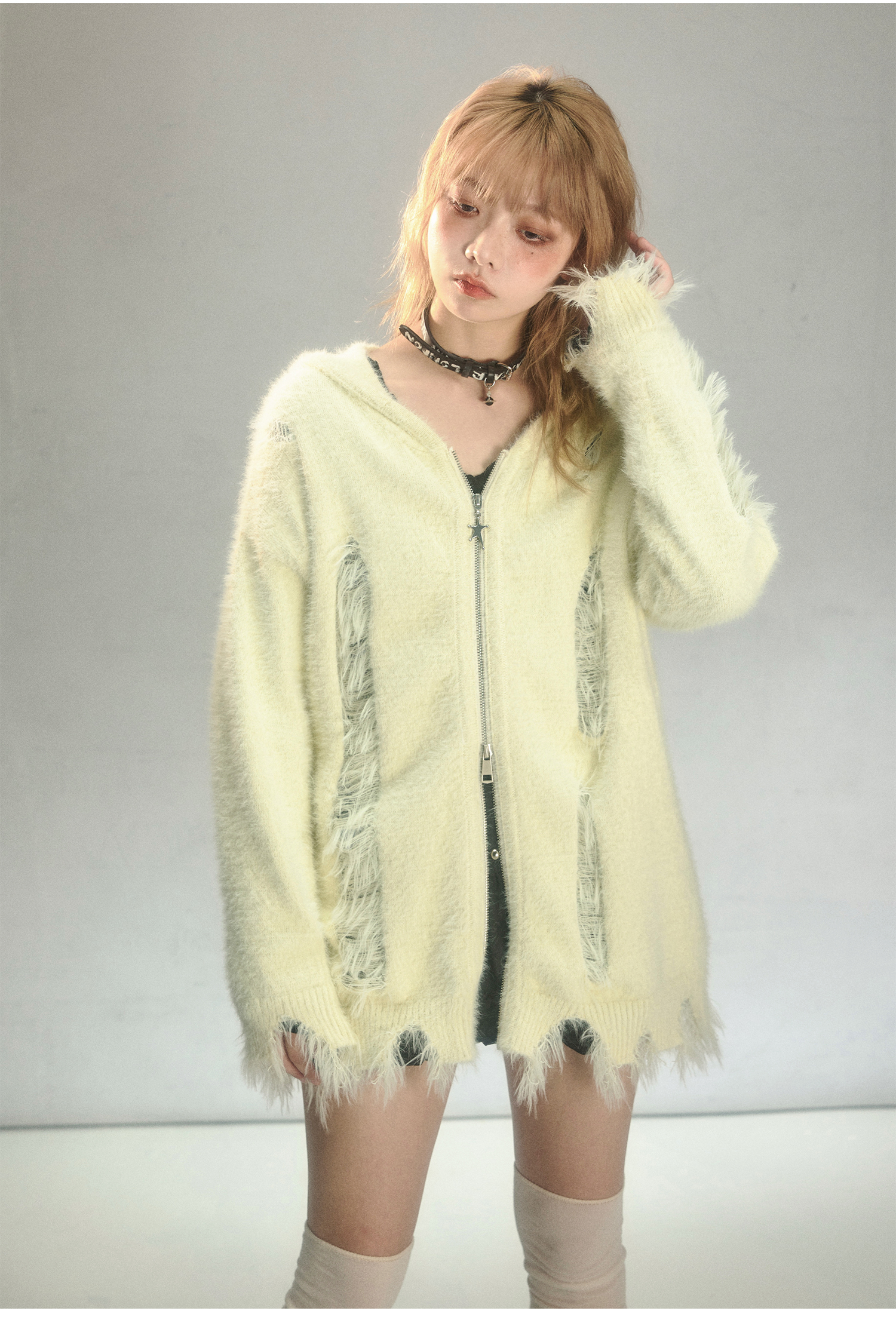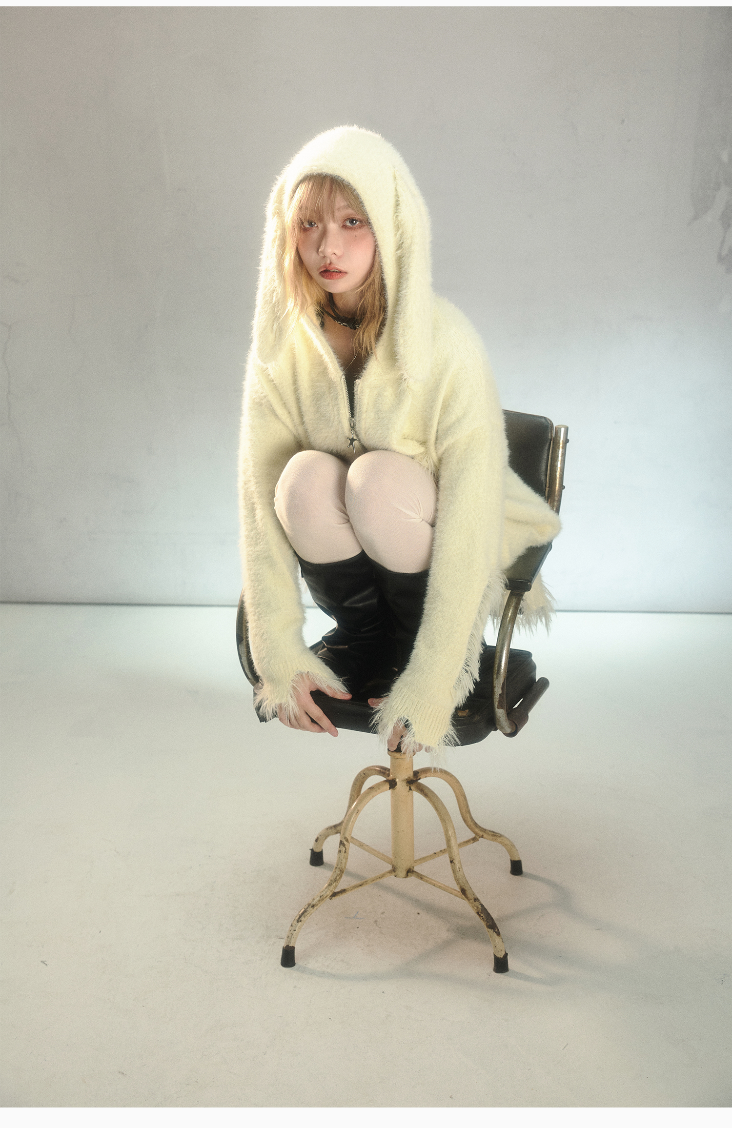 Rabbit Ear Zipper Knit Hoodie NA6967