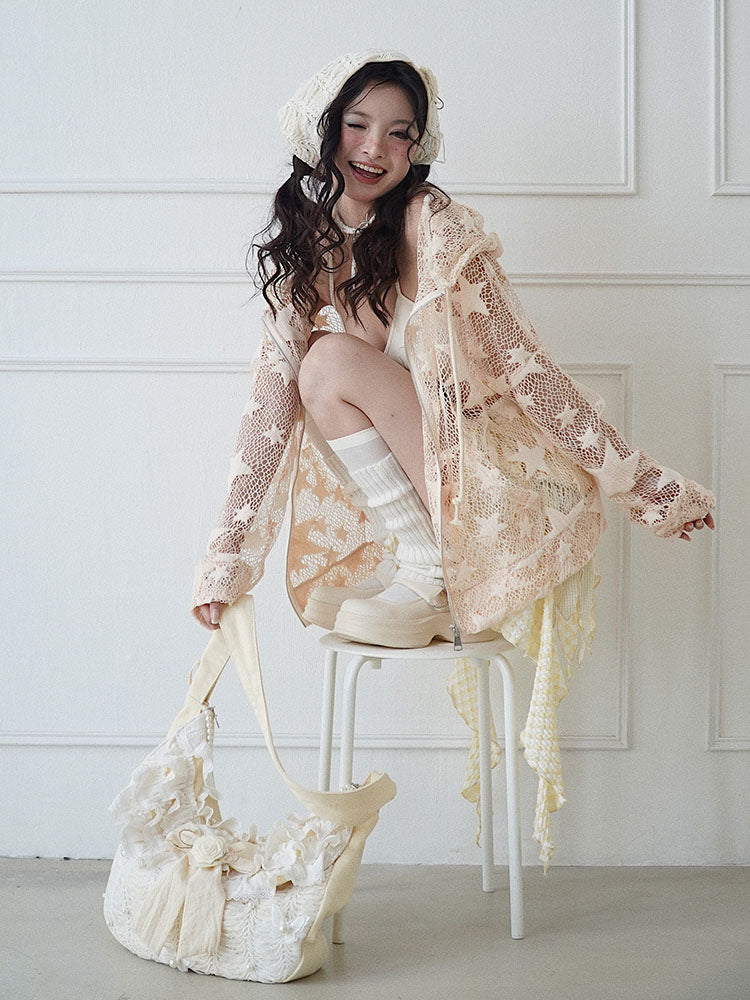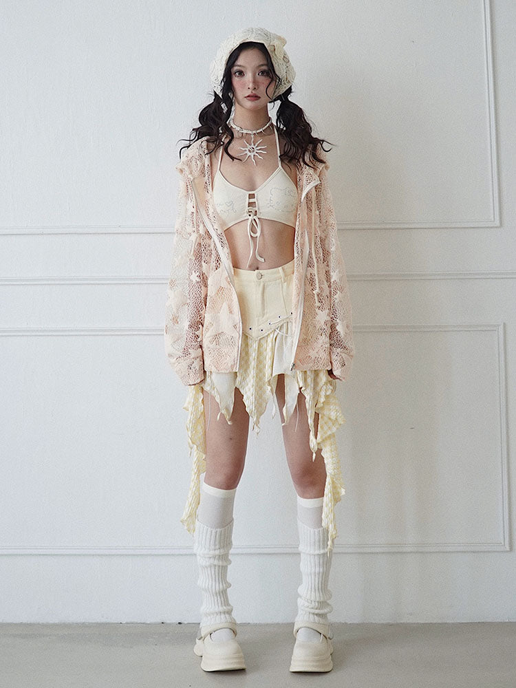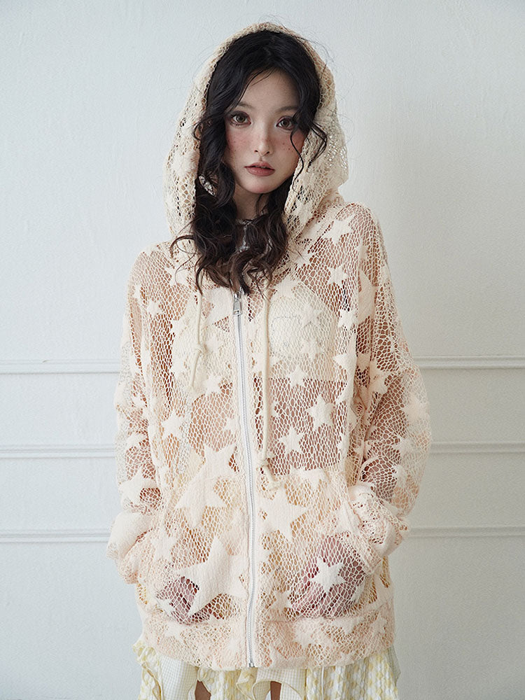 Sheer Mesh Hollow-Out Zipper Hoodie NA7709