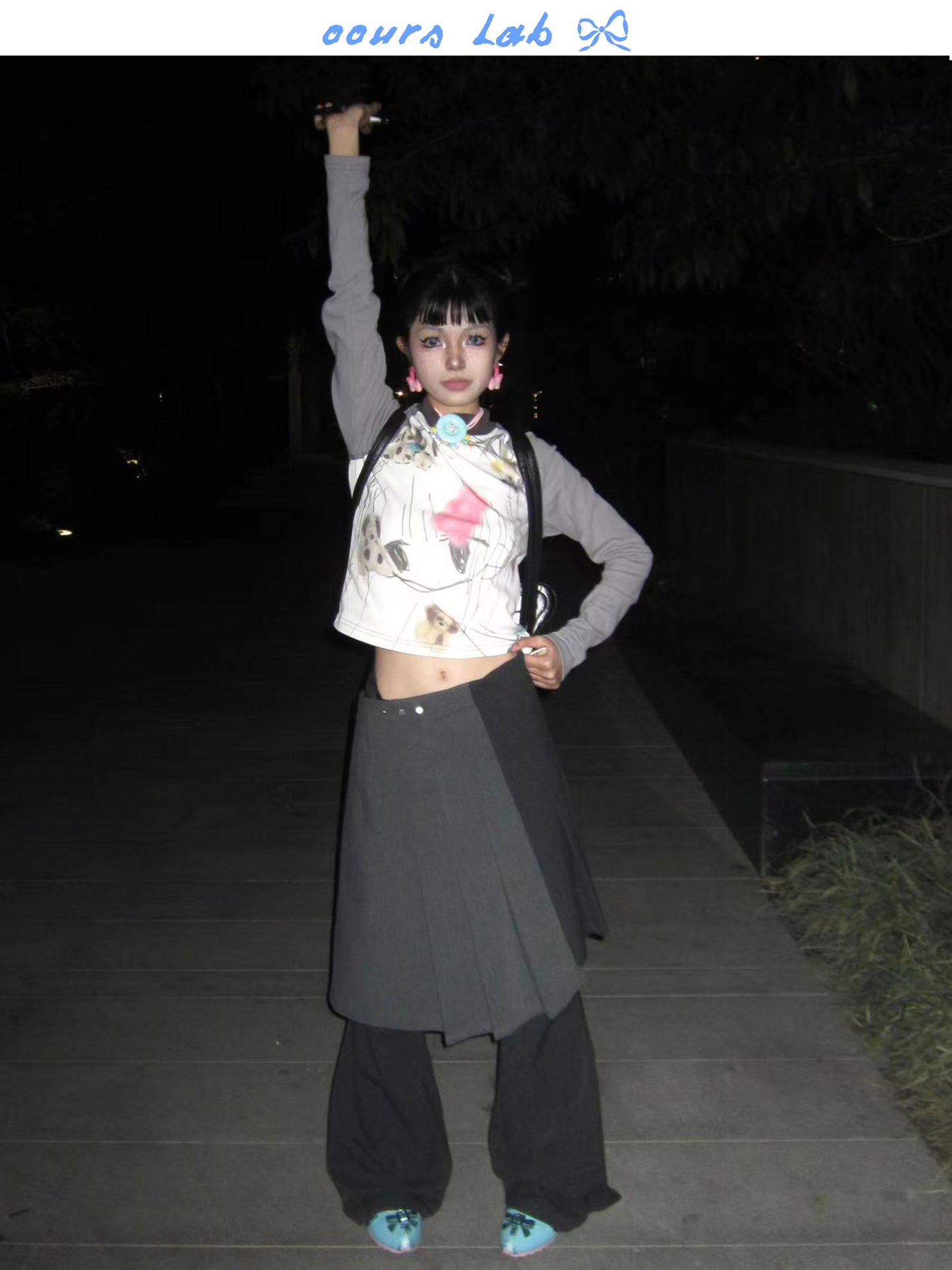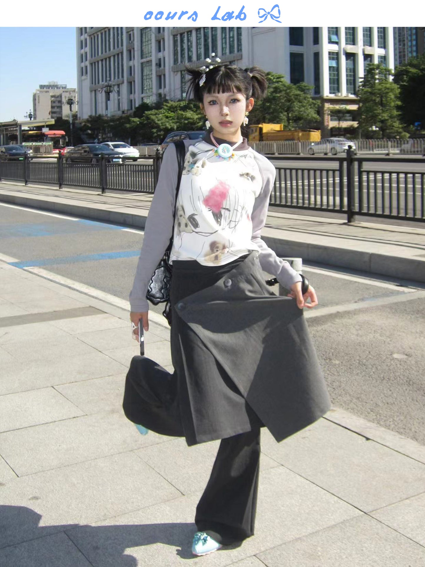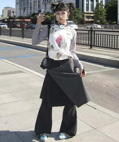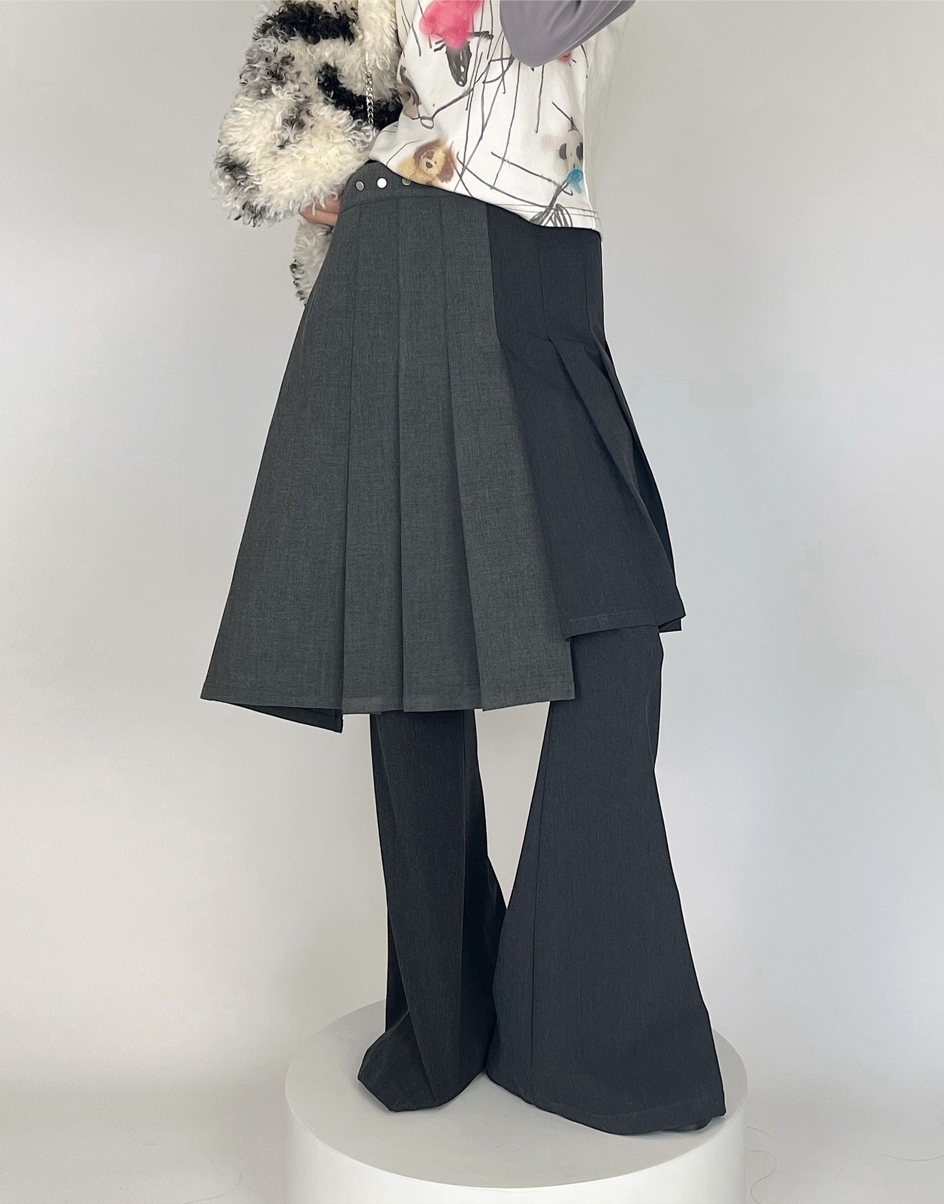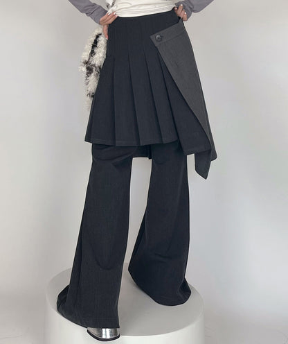 Asymmetrical Wrap Pleats Skirt & Flare Trousers NA8231