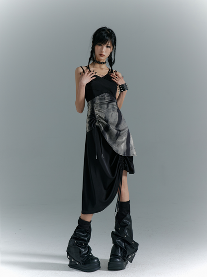Drawstring Asymmetrical Hem Camisole Midi Dress NA8158