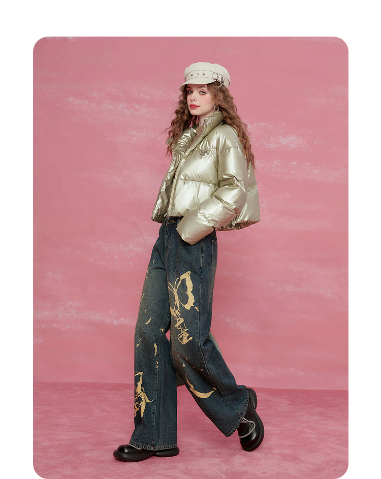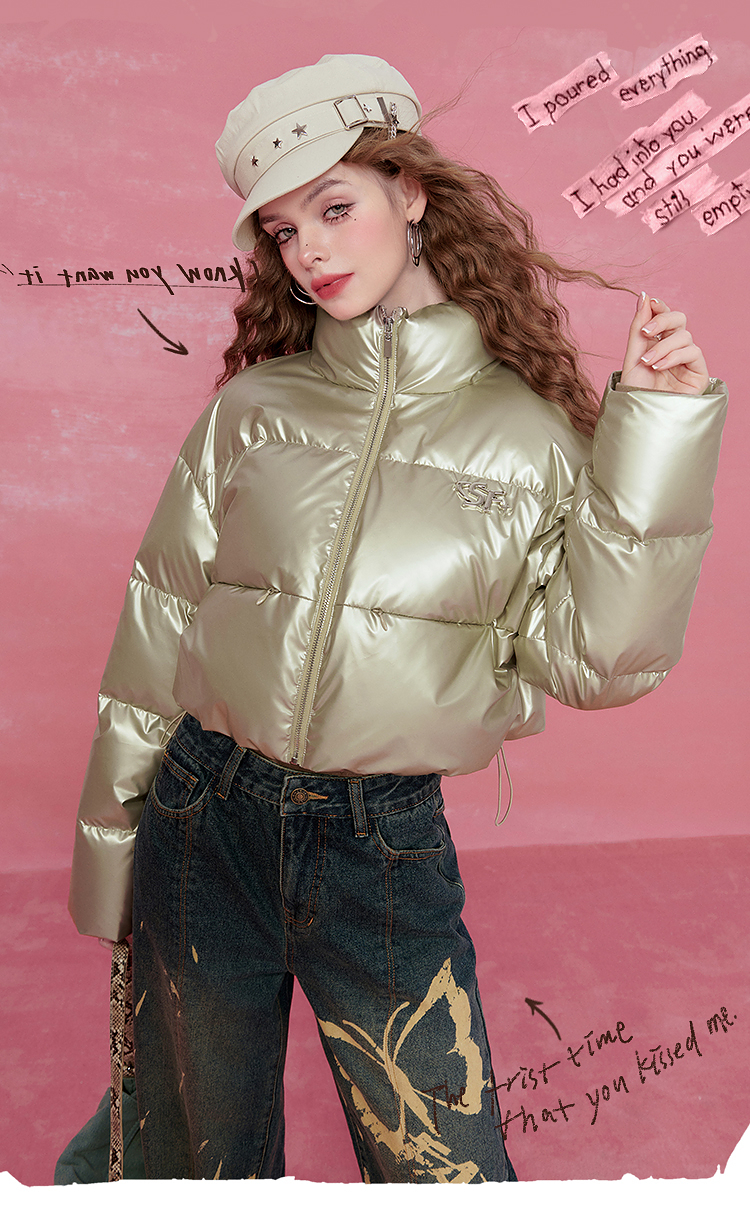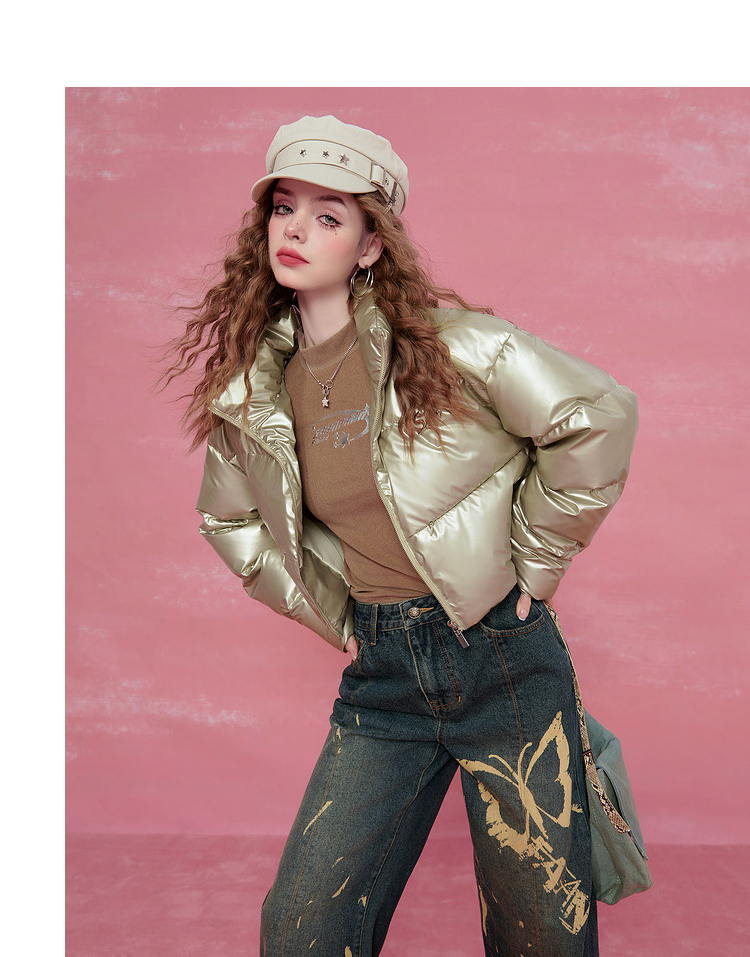 Glossy Short Stand Neck Thick White Duck Down Jacket NA6801