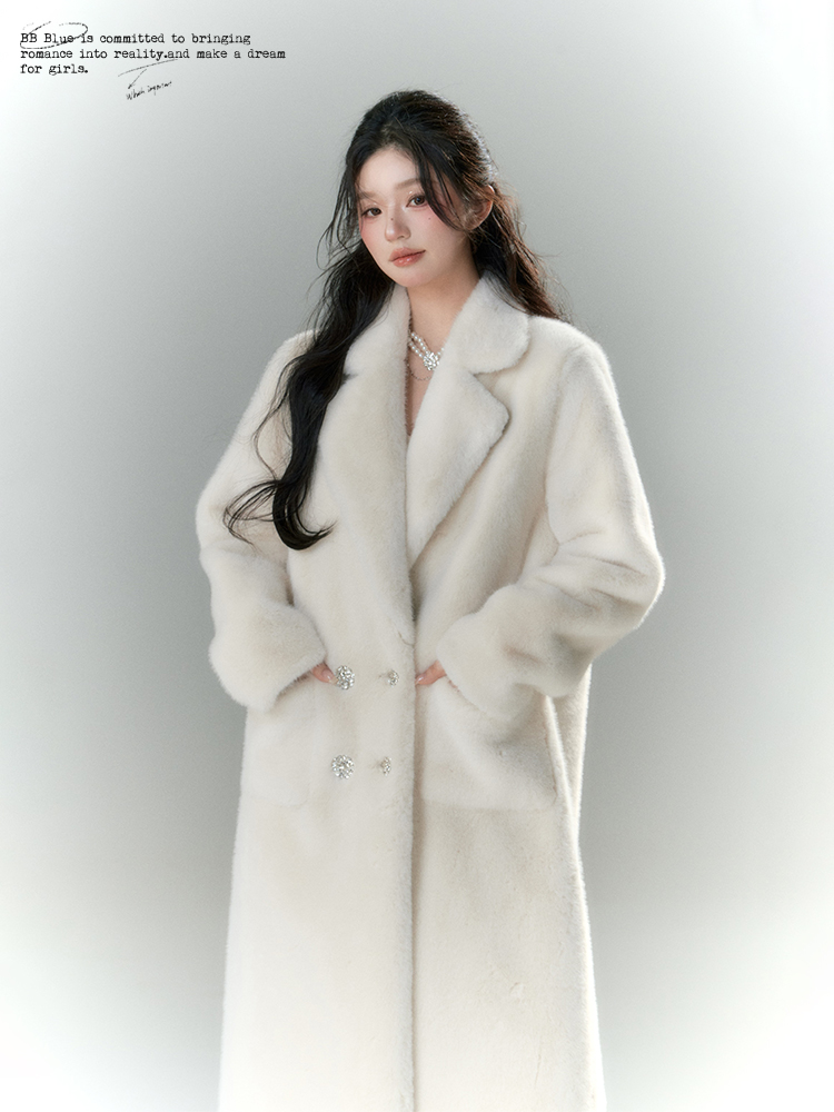 Double-Breasted Fake Fur Velvet Coat NA7459
