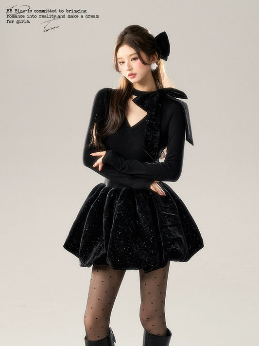 Draped Butterfly Long Sleeve Shirt & Mermaid Skirt Setup NA7554