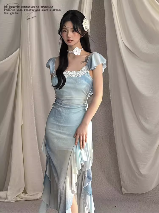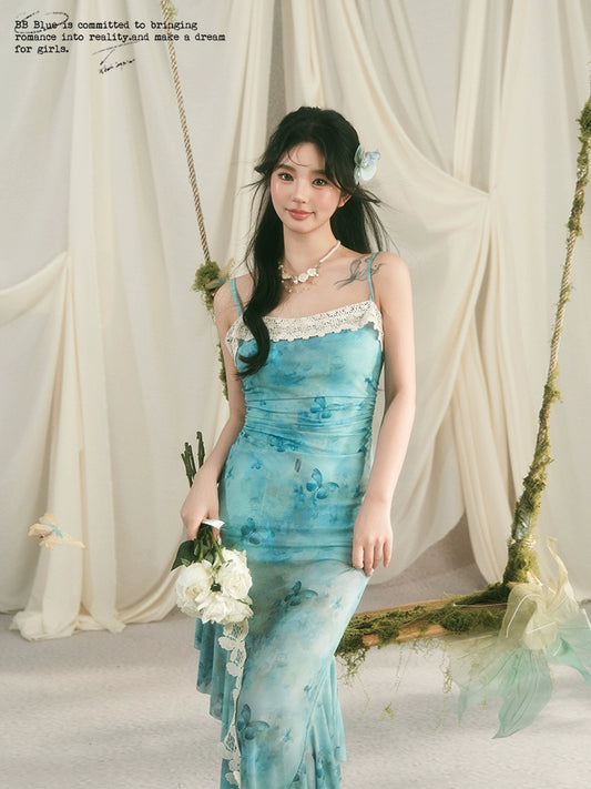 Embroidery Lace Tie-Dye Mermaid Camisole Dress NA7565