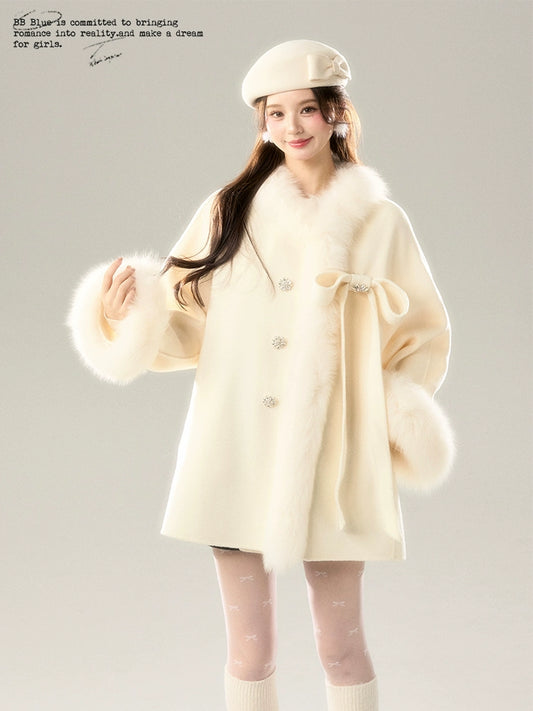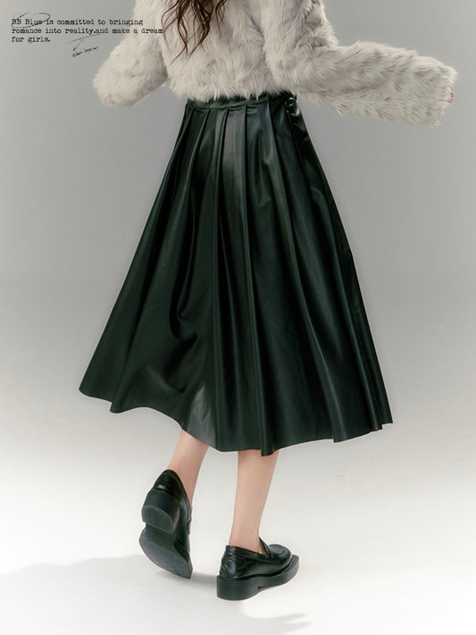 Tweed Fake Fur Jacket & Short Pleats Skirt Setup NA7568