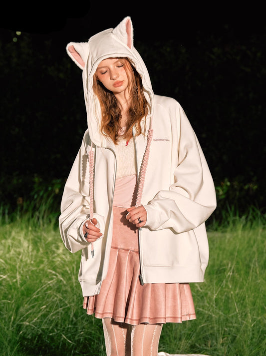 Ear Fleece Oversize Zipper Hoodie NA6088