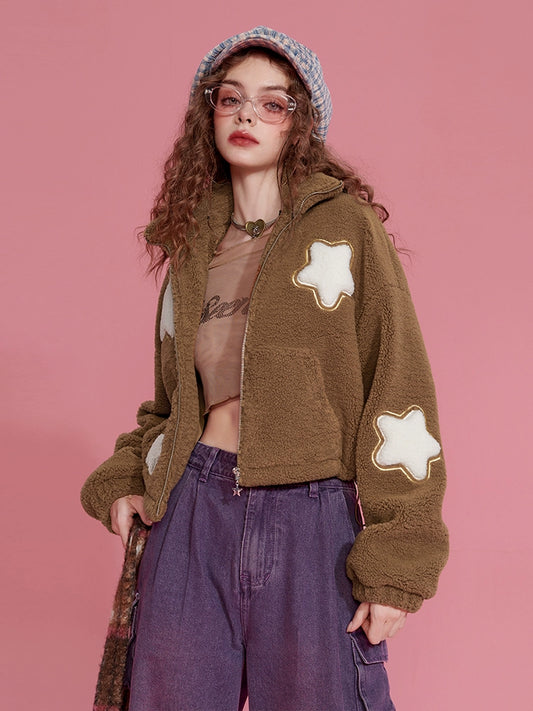 Fake Shearling High-Neck Star-Embroidery Jacket NA6785