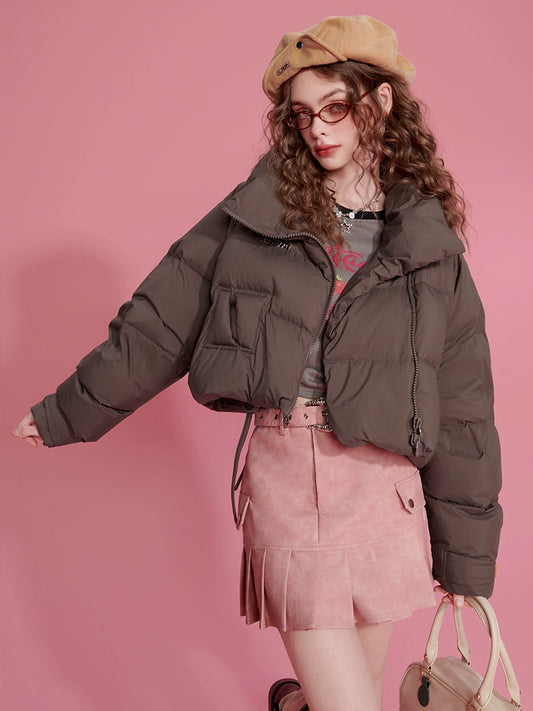 High-Neck Short White Duck Down Jacket NA6784