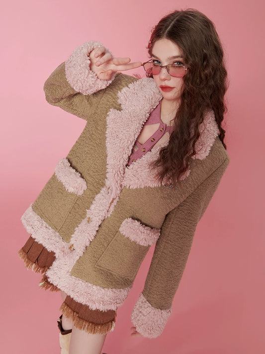 Fake Shearling Lined Oversize Jacket NA6783
