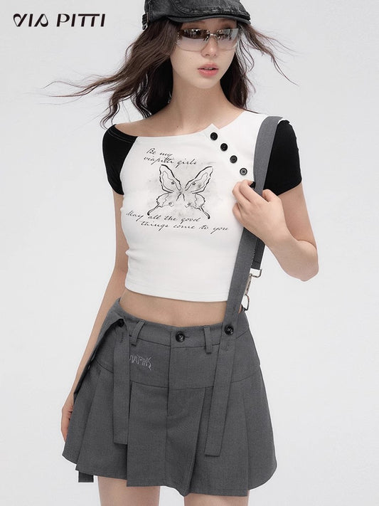 Detachable Two Piece Waist Patchwork Pleated Short Skirt NA4841