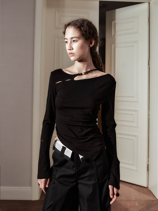 Irregular Hollow Flare Sleeve T-shirt NA7866