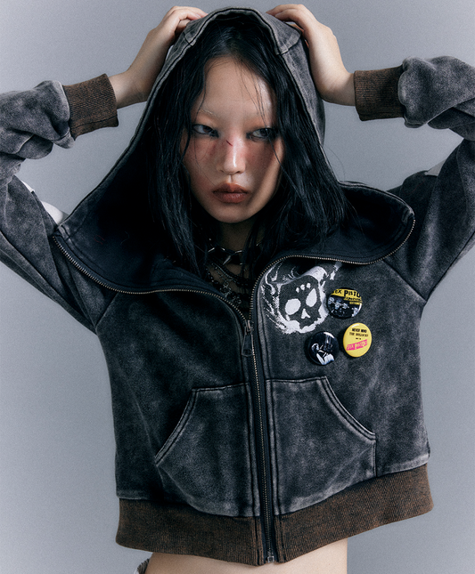 Graphic Raglan Sleeve Zipper Hoodie NA8194