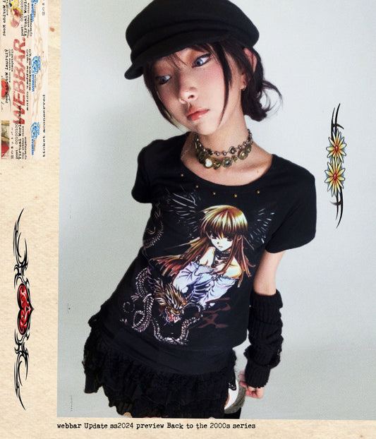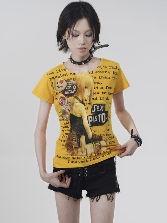 2000s Internet Heart Image Print Short Sleeve T-Shirt NA7621