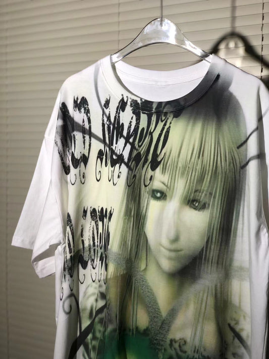 Anime Print Oversize V-neck Short Sleeve T-Shirt NA7665