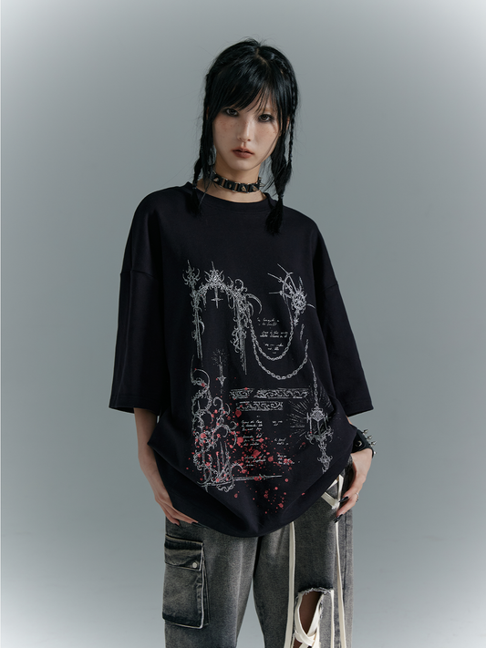 Gothic Oversize Lightweight Cotton Short Sleeve T-Shirt NA7635