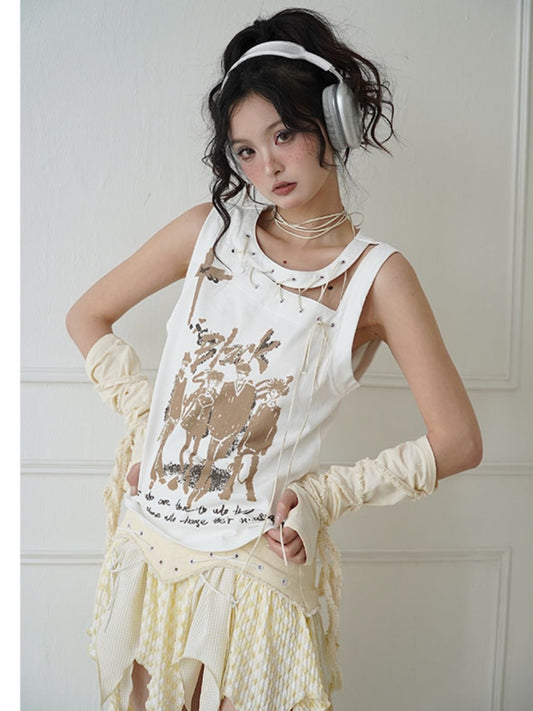 Cartoon Print Lace Tank Top NA7660