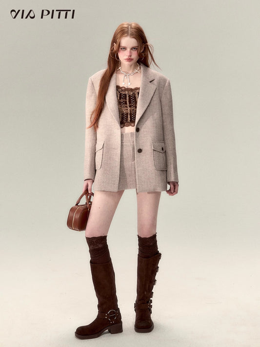 Tailored Jacket & Pleated Short Skirt Setup NA5086