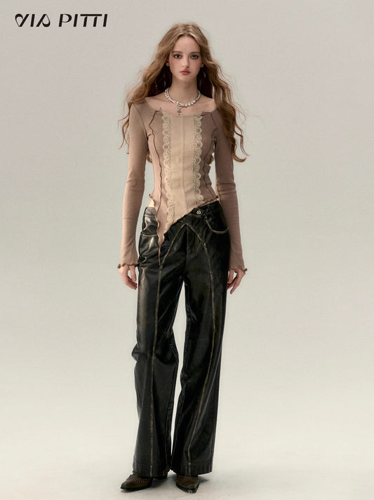 PU Leather Straight Leg Pants NA5105