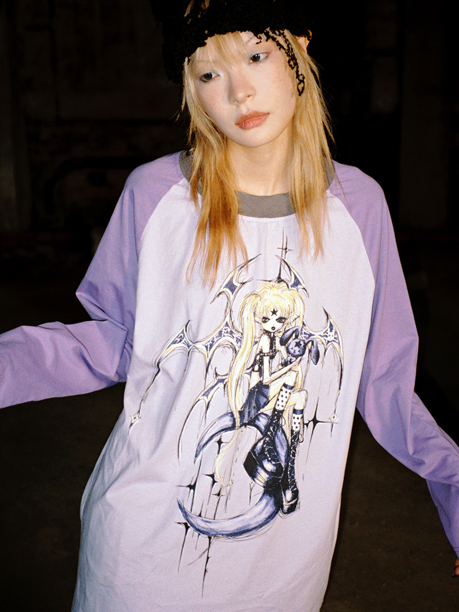 Cartoon Print Raglan Long Sleeve T-Shirt NA6635